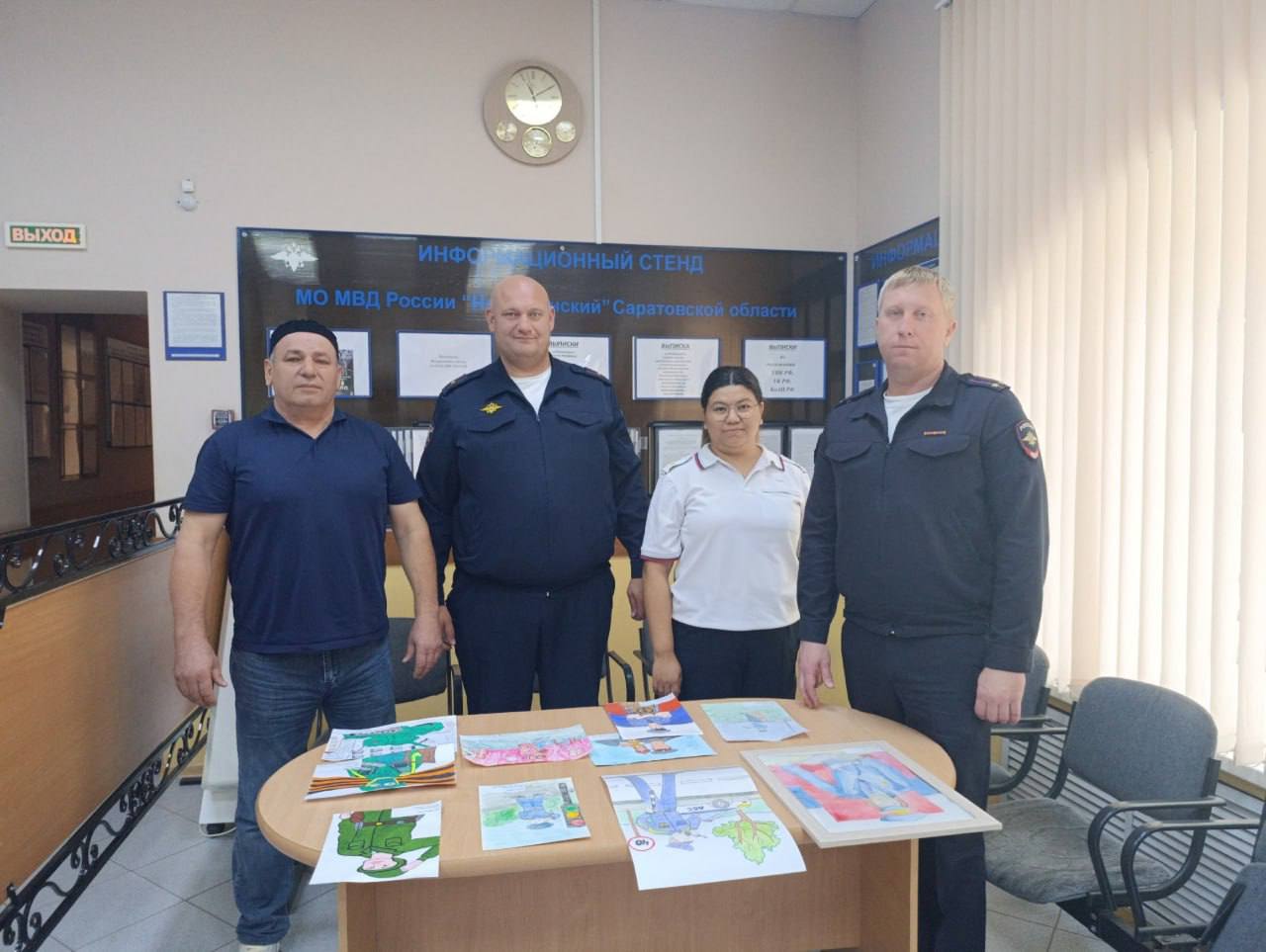 Сотрудники МО МВД России «Новоузенский» и член Общественного совета Муса Тайсумов подвели итоги первого этапа конкурса детского рисунка «Мои родители работают в полиции».