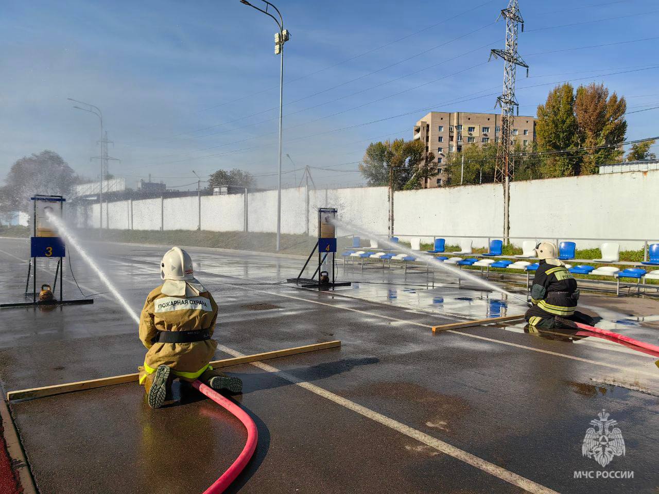 13 команд со всей области сражались за звание лучших. У каждой команды была всего одна попытка - развернуть от автоцистерны одну магистральную линию и две рабочих, наполнить с расстояния пяти метров две мишени водой.