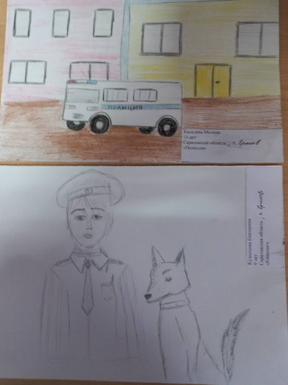 Рисунки Ангелины Мирошниковой - Военная медсестра, Анны Лутониной - Мой папа полицейский и Кристины Мусензовой - Мой дядя кинолог были отобраны в качестве победителей членами жюри, состоящего из сотрудников полиции и общественников.