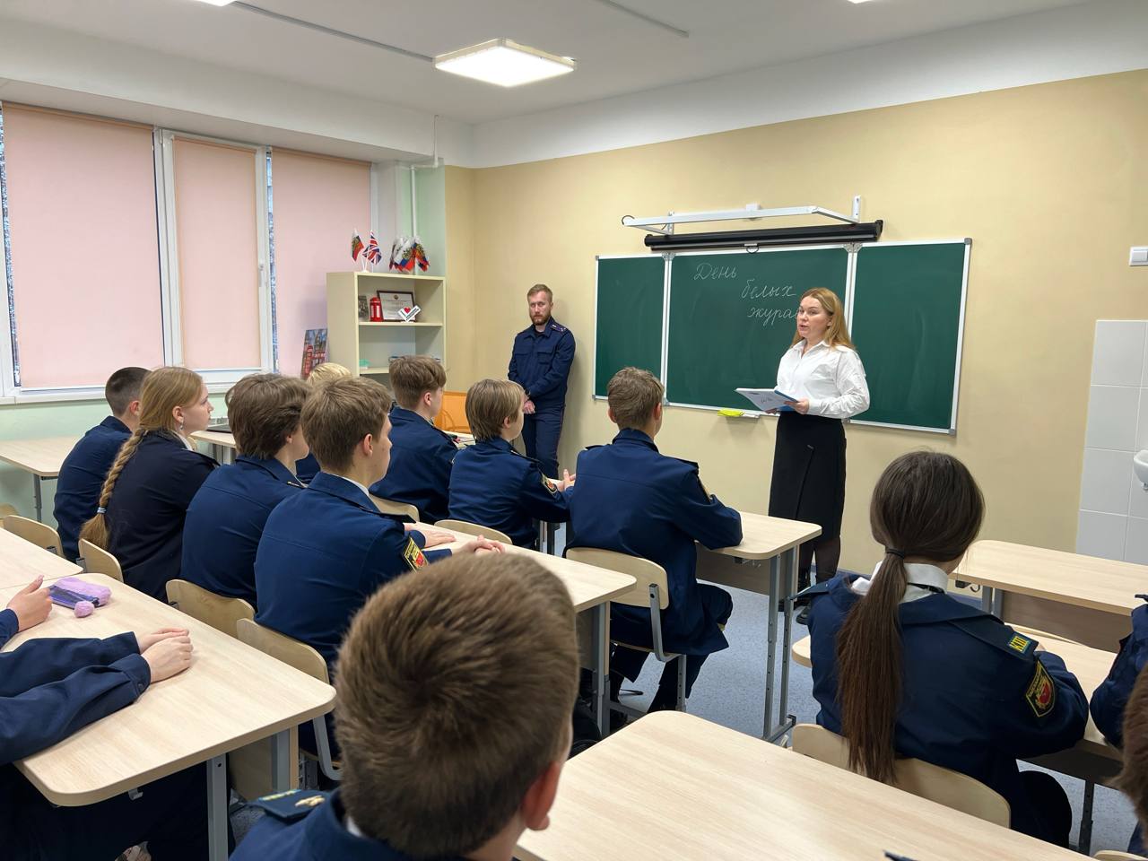 Сотрудники следственного управления по Саратовской области провели тематическое занятие для кадетов подшефного кадетского 9-го класса МОУ «СОШ «Патриот»» с кадетскими классами им. Героя Российской Федерации Ю.М. Дейнеко города Энгельса. Мероприятие состоялось в рамках всероссийского проекта «Разговоры о важном» и было приурочено к проведению Всероссийской акции памяти павших воинов России - «Дни Белых журавлей».
