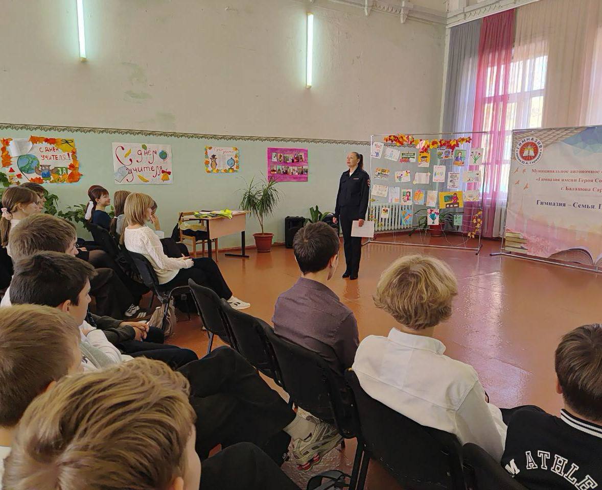 В рамках профилактической работы по повышению безопасности дорожного движения, которая проводится на постоянной основе, инспектор Госавтоинспекции МО МВД России «Балашовский»Ольга Кудашова встретилась с обучающимися Гимназии имени Ю.А. Гарнаева и школы № 9 имени П.А. Столыпина в городе Балашове.