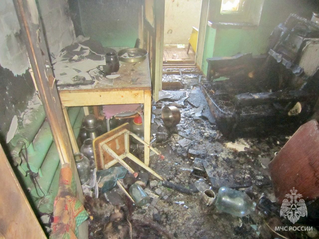 Очаг пожара находился в кухне, огнем повреждены домашние вещи. Пожар потушен на 12 квадратных метрах.