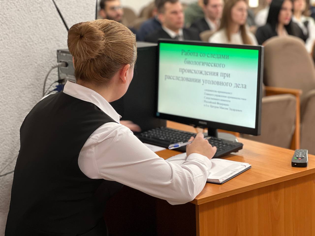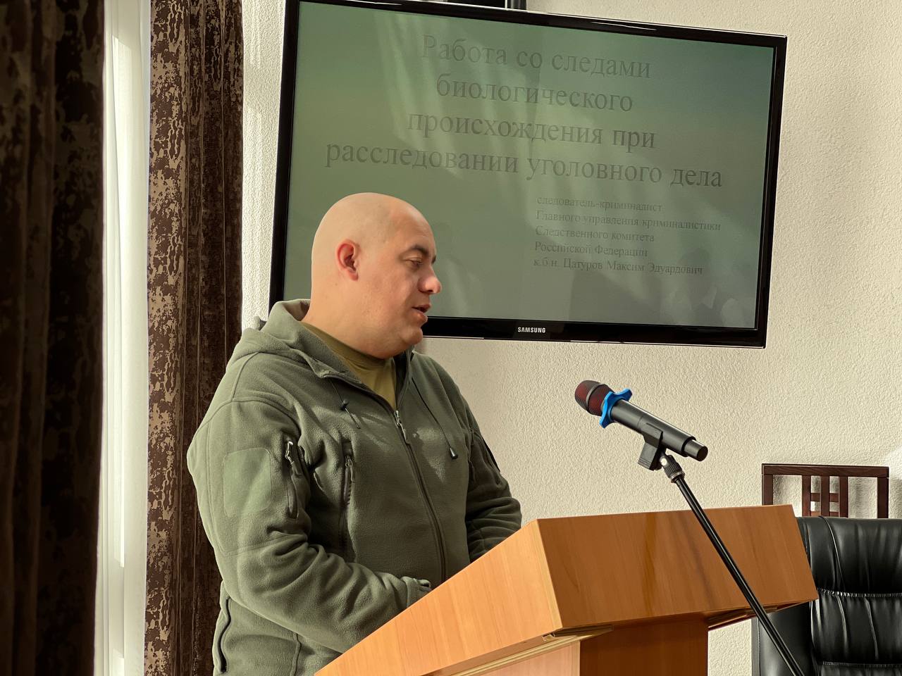 В рамках заседания с докладом на тему «Работа со следами биологического происхождения при расследовании уголовных дел» выступил следователь-криминалист Главного управления криминалистики СК России Максим Эдуардович Цатуров. В своем выступлении он осветил современные методики и практические аспекты работы с вещественными доказательствами.