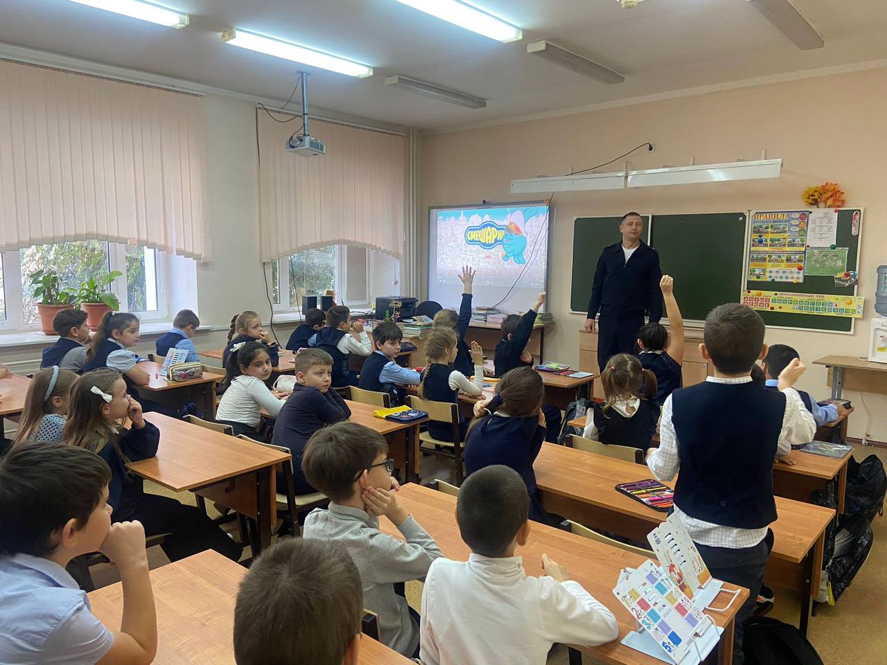 Клуб «Праздничный Саратов» провел выездное мероприятие на важную тему Правил дорожного движения, участниками которого стали учащиеся вторых классов Гуманитарно-экономического лицея, а приглашенным гостем мероприятия стал сотрудник управления Госавтоинспекции Саратовский области Иван Владимирович Пименов.