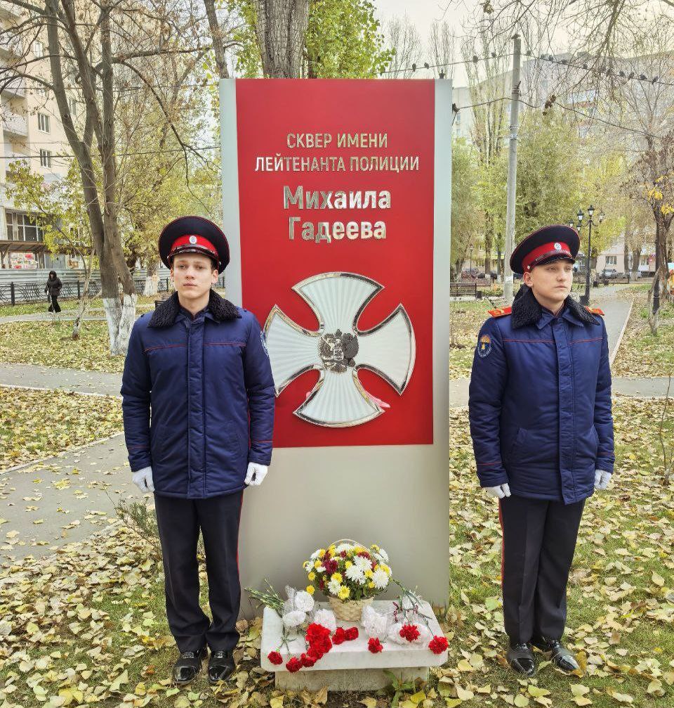 Кадетам рассказали об отваге и мужестве правоохранителей, которые отдали свои жизни в борьбе с преступностью. Среди героев погибший 21 декабря 2019 года при исполнении служебных обязанностей в Заводском районе Саратова Михаил Гадеев. В вечернее время в составе автомобильного патруля он осуществлял охрану общественного порядка, для проверки документов им с напарником были остановлены двое подозрительных граждан. В ходе досмотра у одного из них было обнаружено наркотическое вещество. Инспектор патрульно-постовой службы Михаил Гадеев принял решение о задержании неизвестных лиц, один из злоумышленников достал пистолет и произвел выстрел в сторону лейтенанта полиции. Сотрудник был ранен, однако, несмотря на это, задержал преступника. От полученного ранения полицейский скончался в больнице, не приходя в сознание. Указом Президента Российской Федерации награжден орденом Мужества (посмертно).