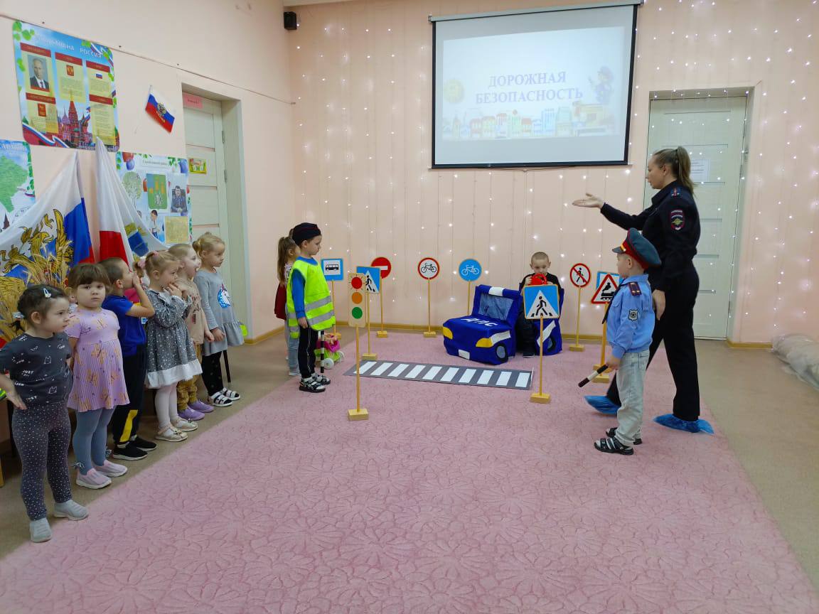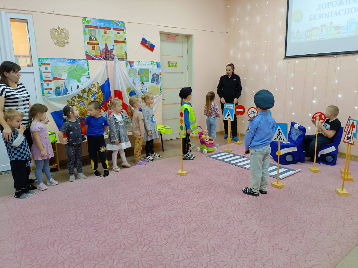 В р.п. Самойловка сотрудники Госавтоинспекции провели для воспитанников детского сада обучающее занятие «В стране дорожных правил»