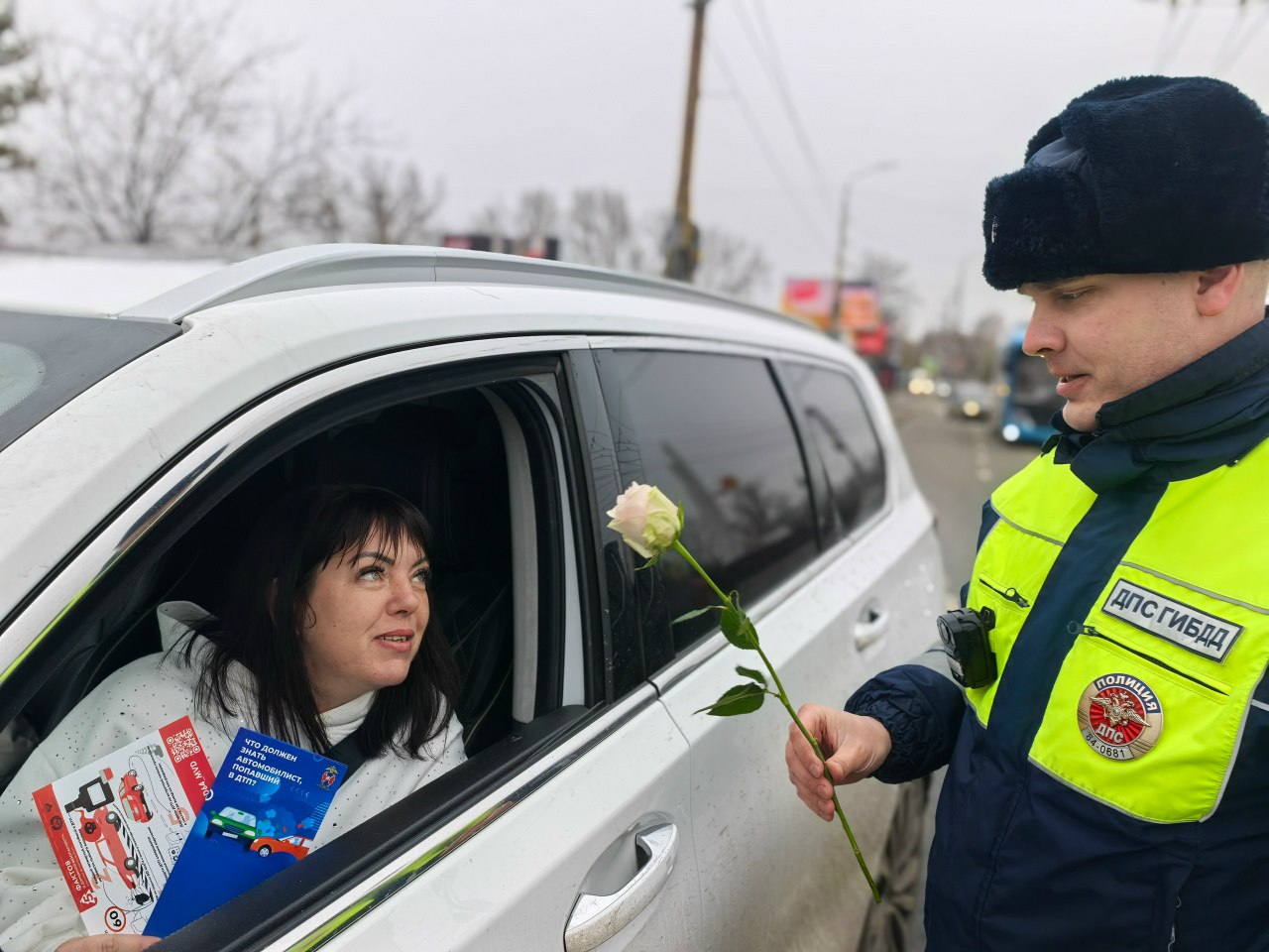 Сотрудники Госавтоинспекции Энгельсского района поздравили женщин-водителей с наступающим Днем матери
