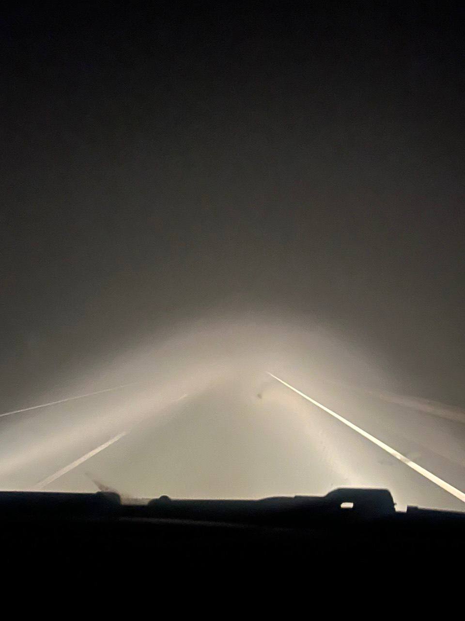 Видимость может быть значительно ограничена, местами достигает 100 метров, что создает опасные условия для движения.
