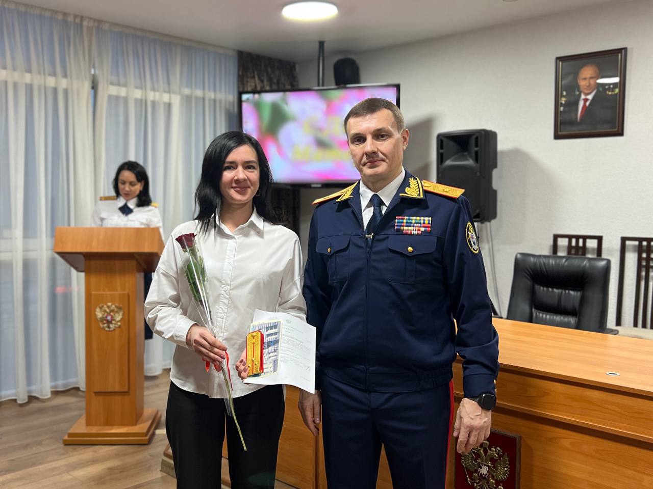 Кроме того, Благодарность Председателя Следственного комитета Российской Федерации была вручена следователю-криминалисту Эльвире Наджафовой за выдающиеся результаты в служебной деятельности, высокий профессионализм и значительный вклад в раскрытие и расследование преступлений.