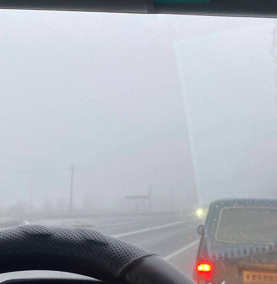 Видимость может быть значительно ограничена, местами достигает 100 метров, что создает опасные условия для движения.