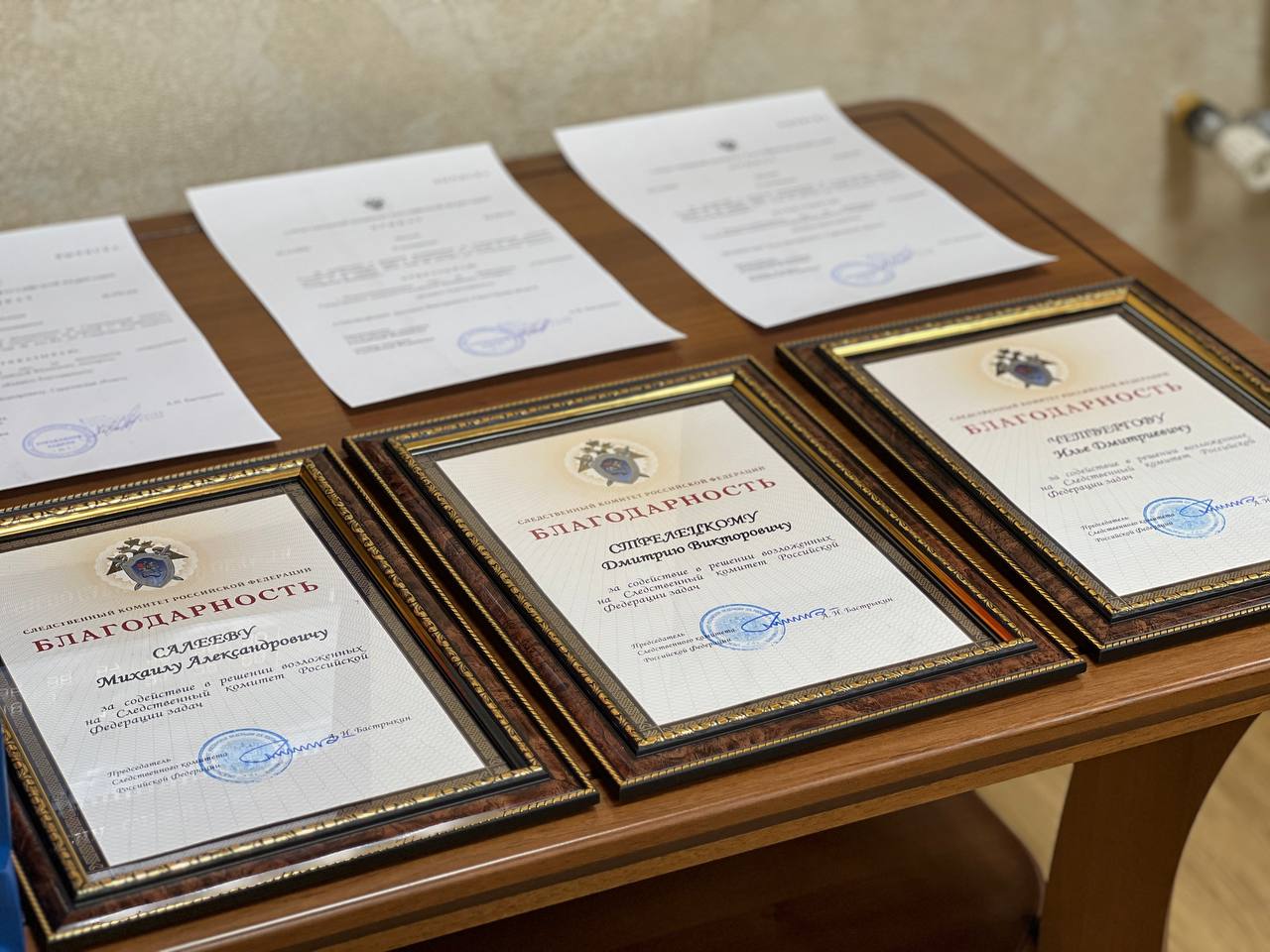Награды были удостоены Дмитрий Стрелецкий, Илья Четвергов и Михаил Салеев. В ходе церемонии юных героев поздравил Председатель Следственного комитета России Бастрыкин Александр Иванович в режиме видеоконференцсвязи.