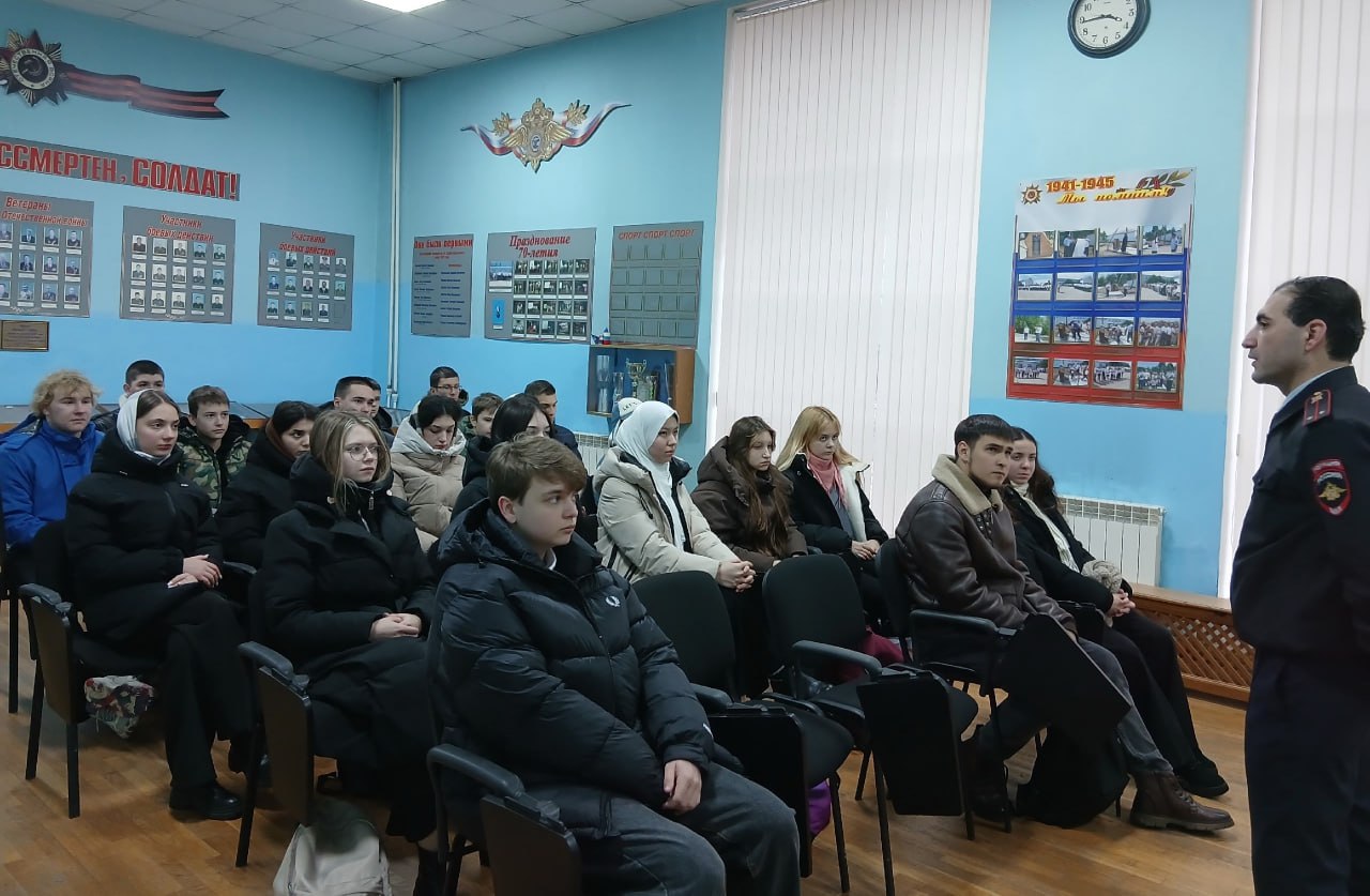 В преддверии новогодних праздников старший инспектор направления ПДН линейного отдела полиции Ершов Гарри Акопян рассказал ребятам об организации работы отдела, как устроен рабочий процесс, какие подразделения существуют внутри отдела. Также сотрудник полиции показал ребятам рабочие места сотрудников. В рамках мероприятия ребята узнали, как осуществляется охрана общественного порядка, профилактика правонарушений и помощь гражданам.