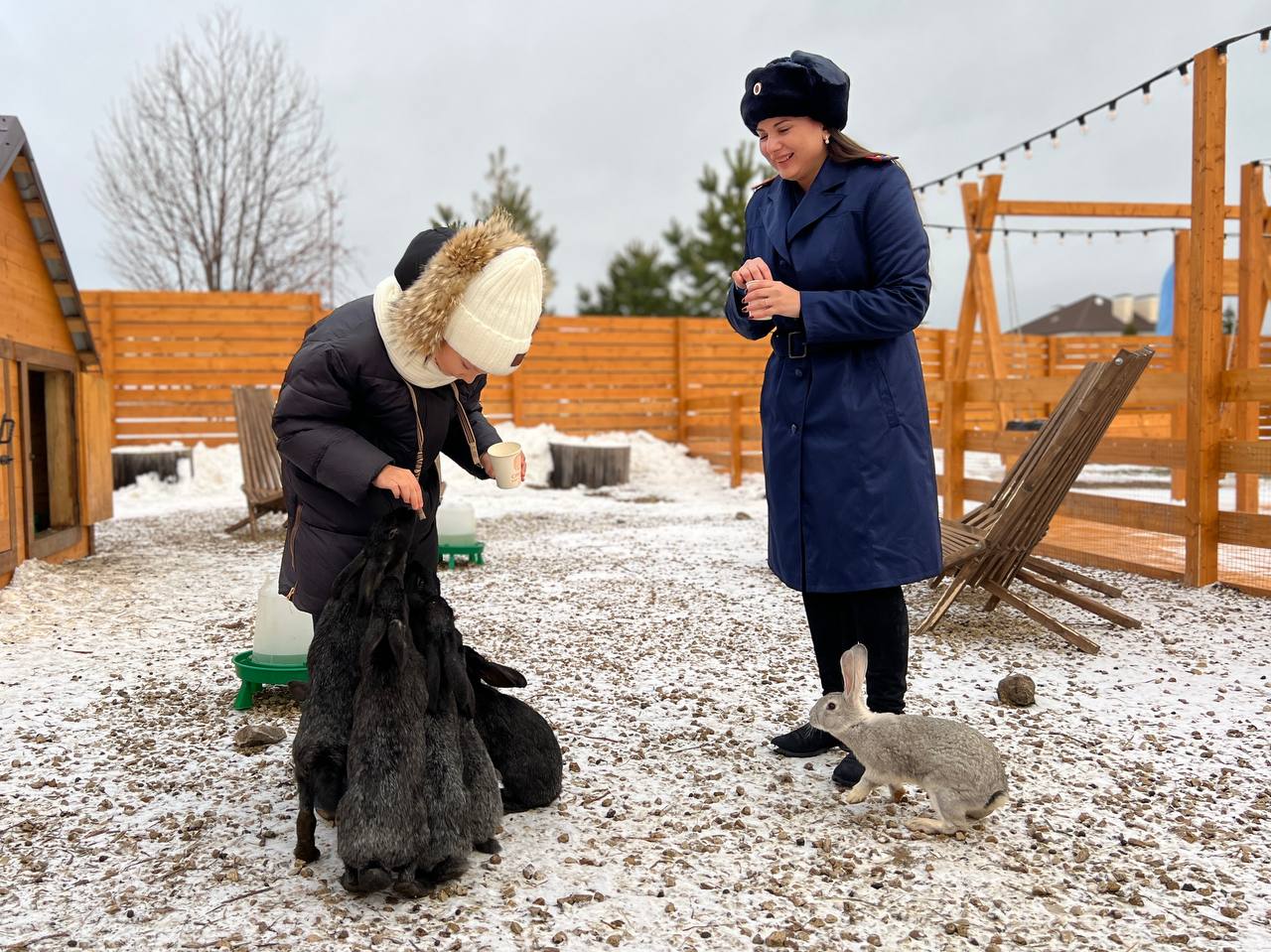 Продолжением встречи стала совместная прогулка с сотрудниками управления и семьей Василисы в парке с животными. Гости смогли пообщаться, погладить альпак, лам, оленей и кроликов. Больше всего девочке понравилось кормить морковкой пушистых кроликов и проводить время в доброй, почти сказочной атмосфере.