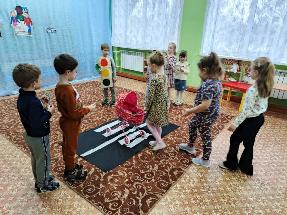 В завершение все с удовольствием поучаствовали в подвижной игре по безопасности дорожного движения и с помощью наглядных пособий вспомнили правила перехода проезжей части дороги.