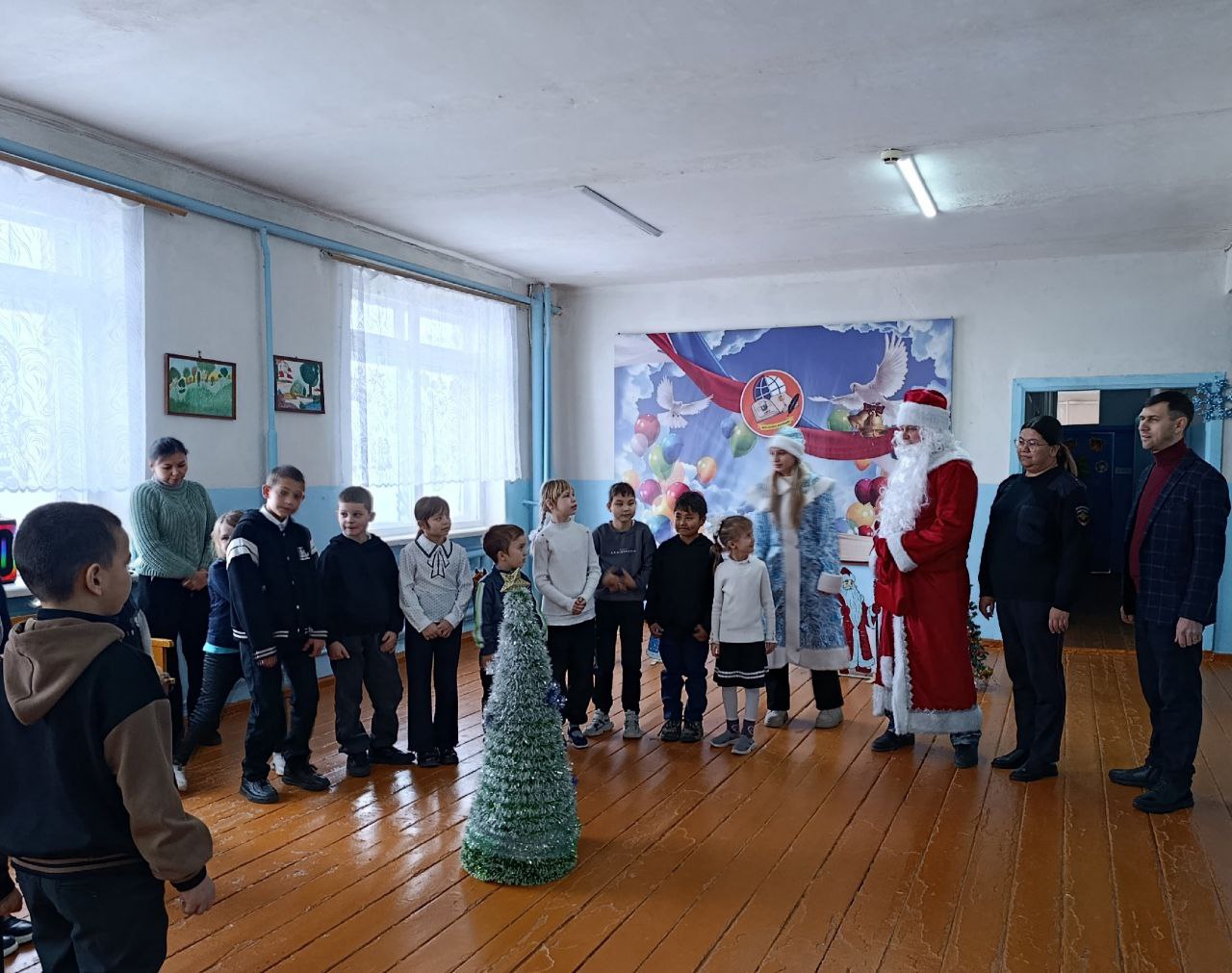 Общественник вместе с инспектором-кинологом старшим лейтенантом полиции Дмитрием Африкановым и инспектором ПДН Кариной Курмангалиевой побывали в специальной коррекционной школе МОУ "СОШ пос. Алгайский" Новоузенского района Саратовской области". Деду Морозу и Снегурочке, с ролью которых великолепно справились полицейские, дети рассказывали стихи, пели песни, делились планами и мечтами.