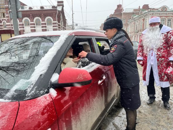 В преддверии Нового Года сотрудники Госавтоинспекции Саратова провели акцию "Полицейский Дед Мороз". В ходе мероприятия, которое прошло на Театральной площади, автомобили останавливал необычный патруль: Дед Мороз и Снегурочка. Они поздравляли водителей, вручали подарки и напоминали о важности соблюдения правил дорожного движения.