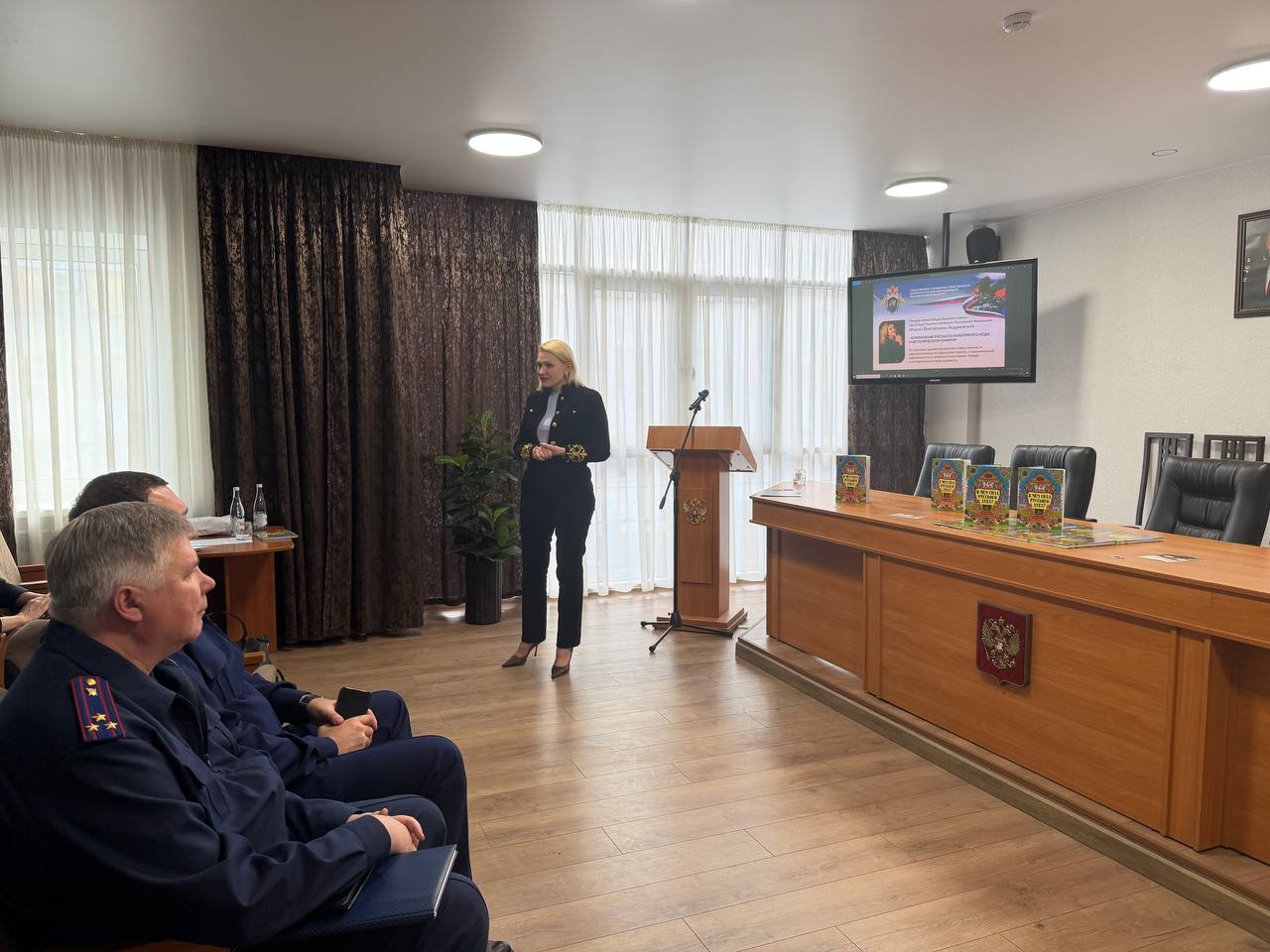 В рамках программы нравственно-патриотического воспитания сотрудников Следственного комитета России член Общественного совета при Следственном комитете Российской Федерации, известный российский писатель, автор более 20 книг, посвященных популяризации русской культуры и национальной идентичности, доктор философских наук Жанна Андриевская провела встречу с сотрудниками ведомства, где обсудила вопросы сохранения русского культурного кода и исторической памяти.
