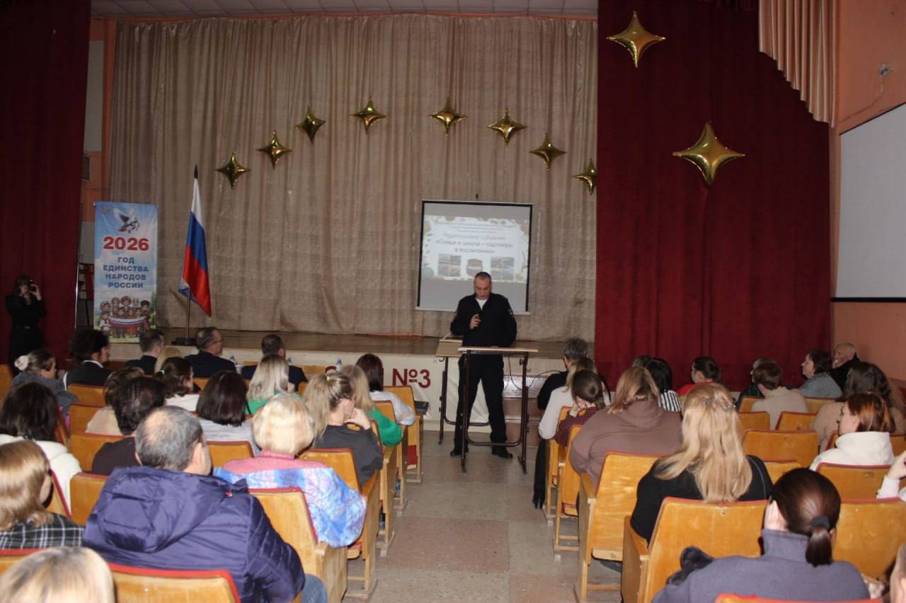 Особое внимание сотрудник Госавтоинспекции уделил вопросам профилактики нарушений правил дорожного движения, ответственности родителей за безопасность детей, а также необходимости постоянного контроля за поведением несовершеннолетних на дороге. Рассказал о проводимых на территории обслуживания профилактических и информационно-пропагандистских мероприятиях, направленных на снижение количества ДТП и тяжести их последствий, и призвал родителей к активному взаимодействию со школой и правоохранительными органами в вопросах обеспечения безопасности детей.