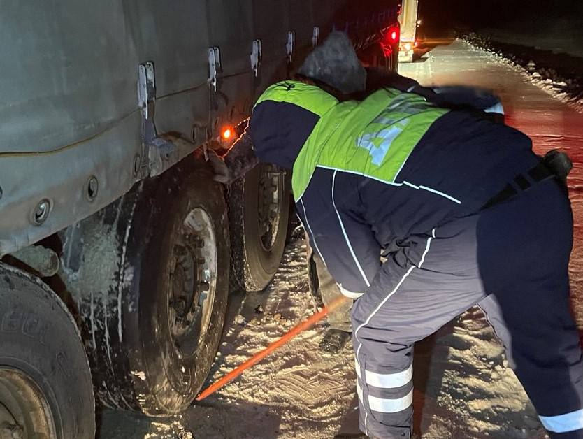 Автоинспекторы отправили мужчину греться в кабину, а сами заменили колесо на запасное. Водитель поблагодарил полицейских за помощь, а те, пожелав ему хорошего пути, продолжили нести службу.