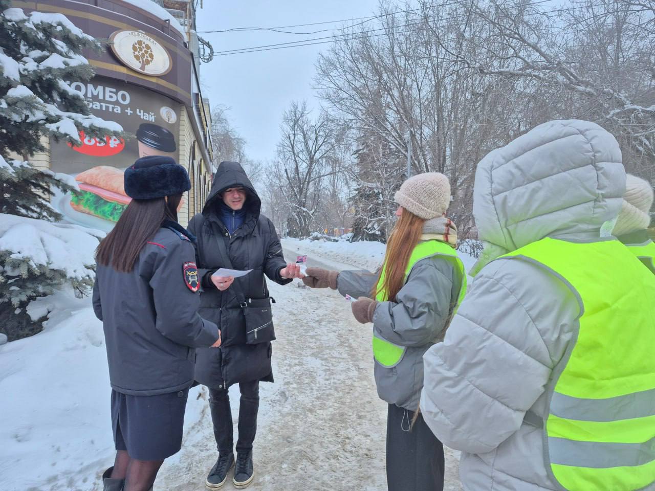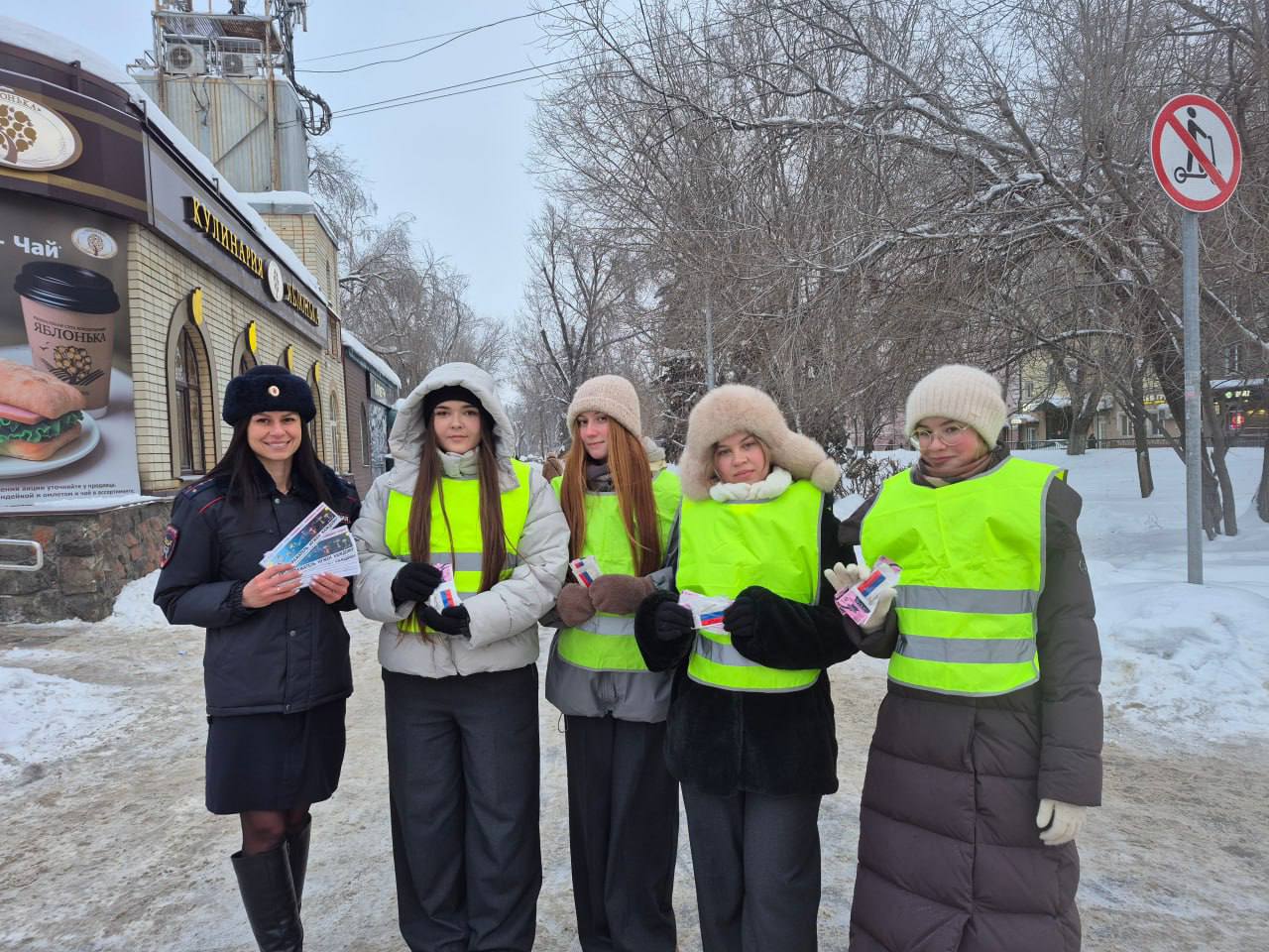 В Саратове полицейские и школьники от отряда ЮИД провели акцию "Засветись!"