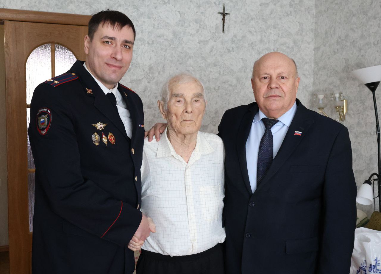 Гости сердечно поздравили ветерана с праздником, подарили цветы и памятные подарки, пожелав ему здоровья, бодрости духа и активных лет жизни.
