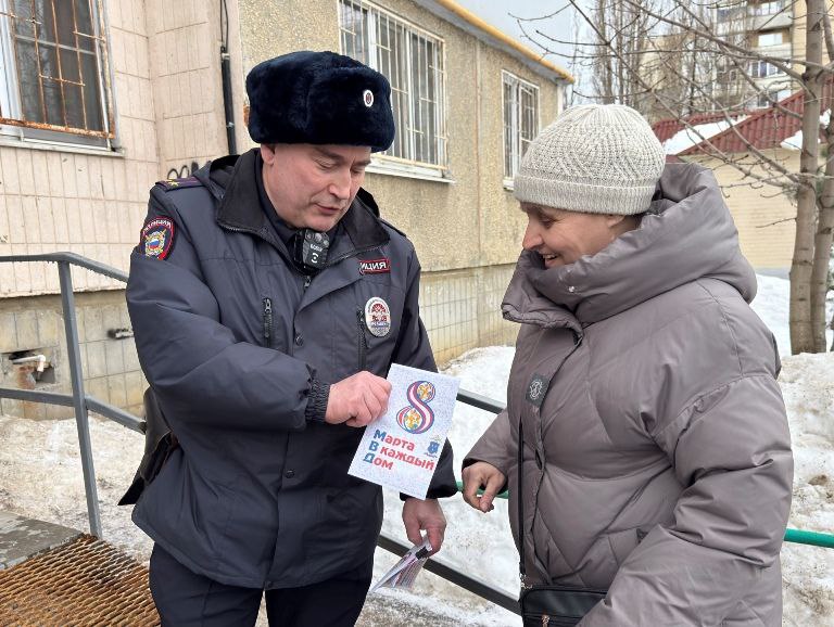 В Саратове в рамках акции #8МартаВкаждыйДом полицейские и общественники поздравили горожанок с наступающим праздником