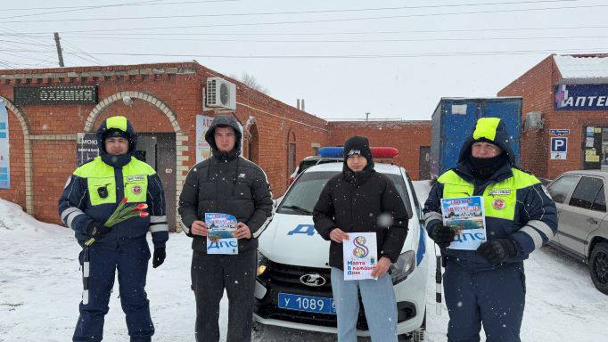 В Дергачах студенты агропромышленного лицея ГБПОУ СО «ДАЛ» и инспекторы ДПС отделения Госавтоинспекции, поздравили с наступающим Международным женским днем 8 Марта прекрасных женщин-водителей и пешеходов.