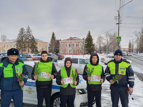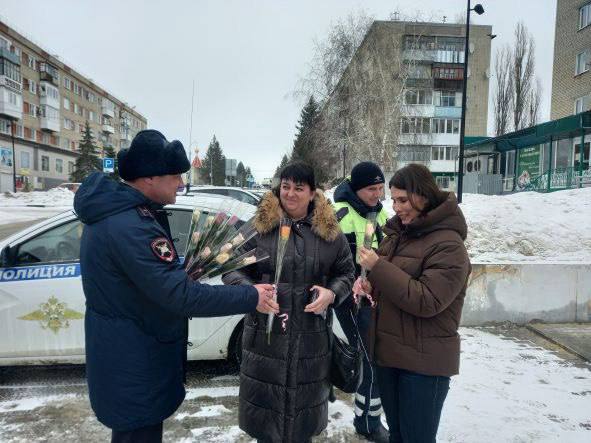 Дорожные полицейские области продолжают поздравлять женщин с наступающим праздником