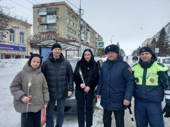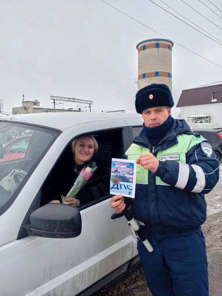 и поздравительные открытки. Останавливая автомобили, сотрудники Госавтоинспекции не выписывали штрафы, а вручали автоледи букеты, желая весеннего настроения, крепкого здоровья, благополучия и безопасных поездок. Многие женщины были приятно удивлены необычной ситуацией на дороге, выражали слова благодарности, говорили, что мужчины в погонах подняли им настроение в пасмурный день.