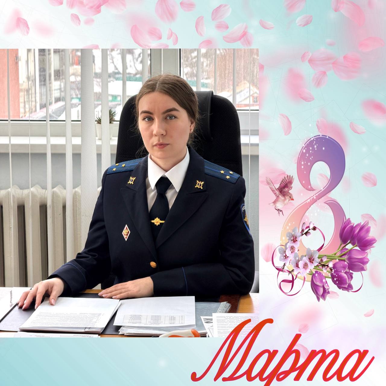 В преддверии Международного женского дня #ХорошихВыходных вам желает следователь по особо важным делам 2 отдела следственной части по расследованию организованной преступной деятельности следственного управления МВД России по г. Саратову старший лейтенант юстиции Алена Арсентьева.