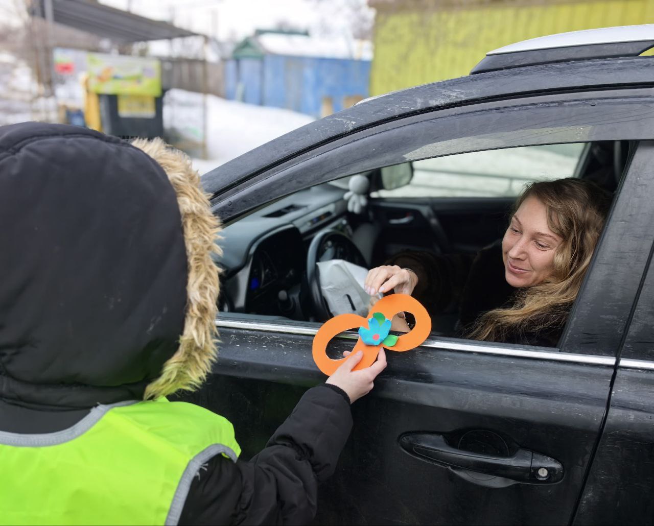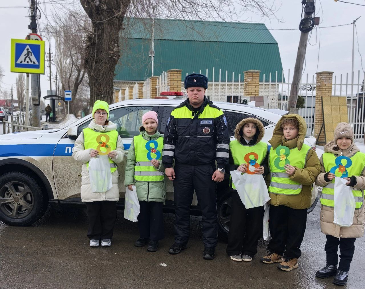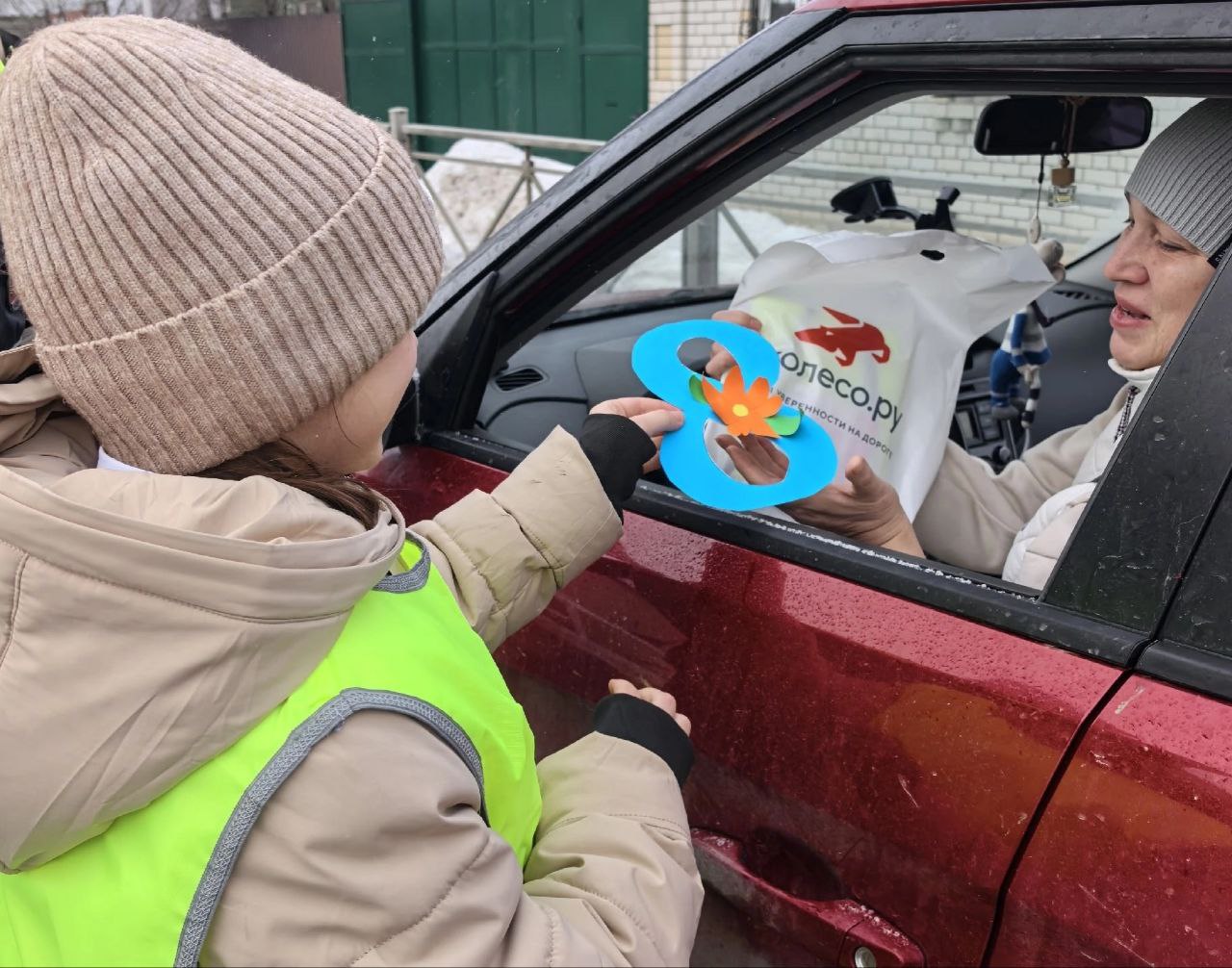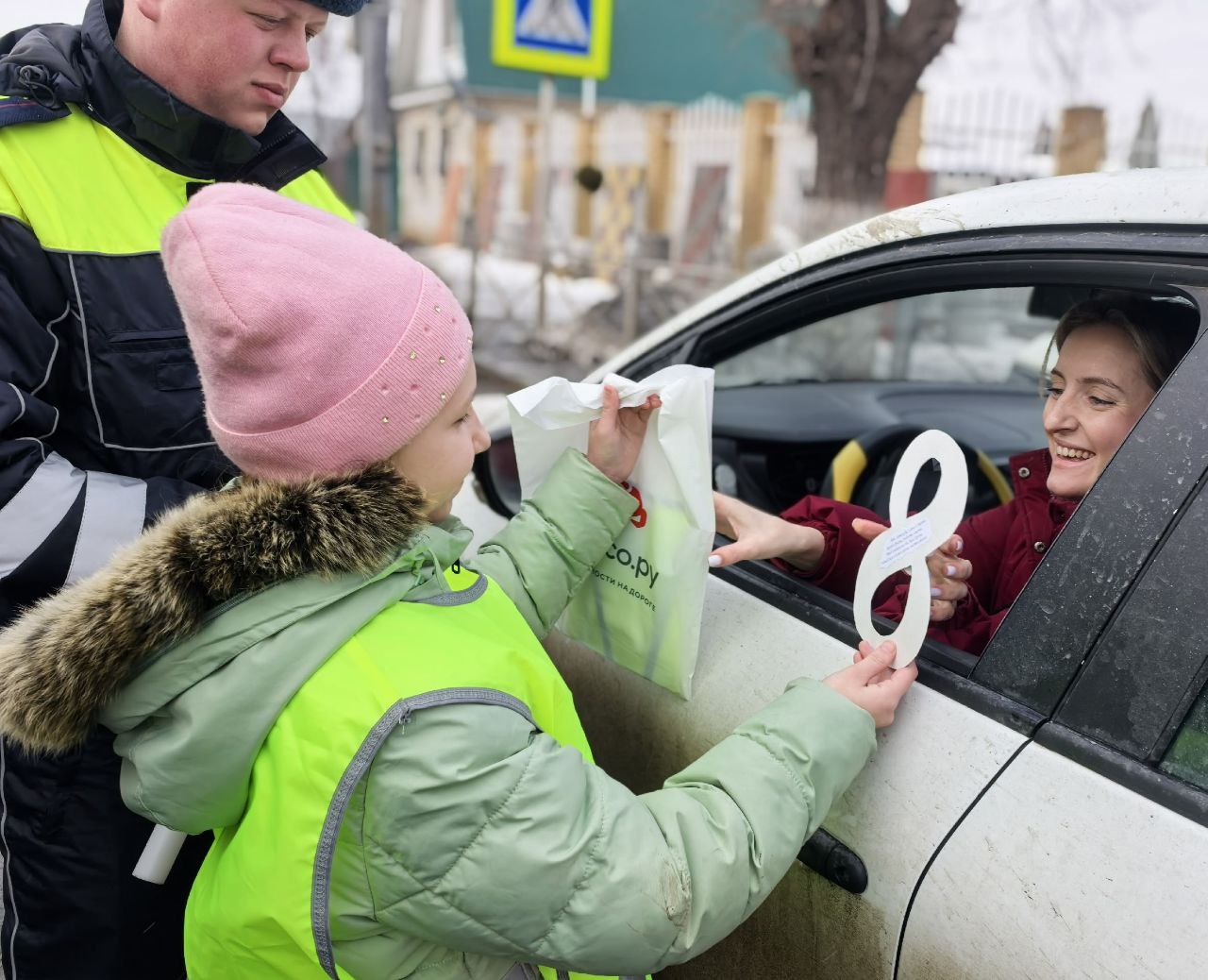 Каждая участница акции получила не только открытку и жилет, но и искренние поздравления от юных инспекторов — улыбки и добрые слова стали лучшим подарком к празднику!