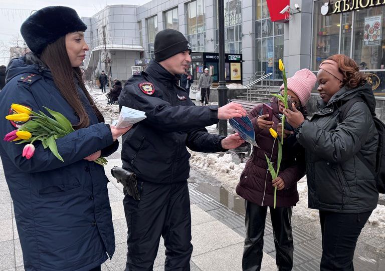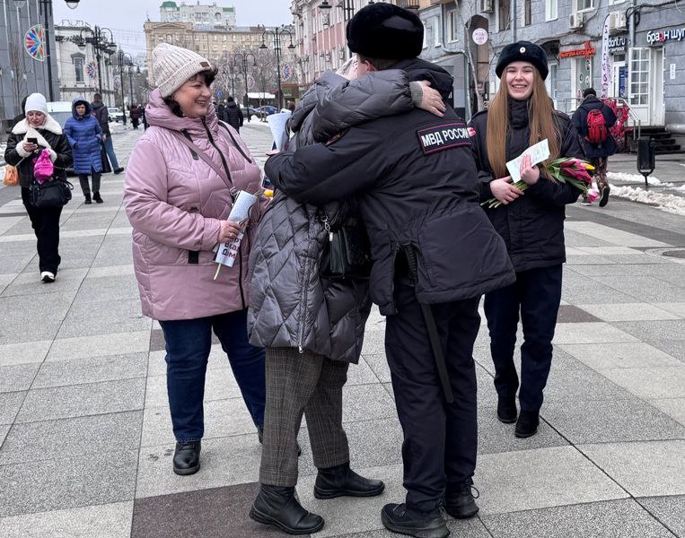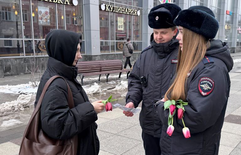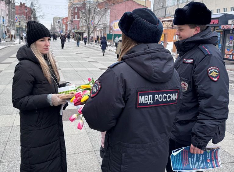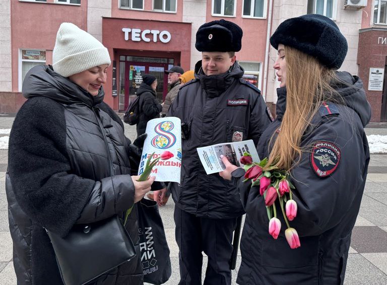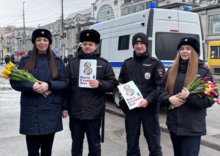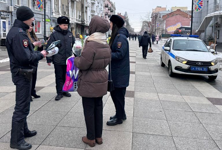 В рамках ежегодной Всероссийской акции МВД России #8МартаВкаждыйДом сотрудники патрульно-постовой службы поздравили жительниц Саратова с Международным женским днем