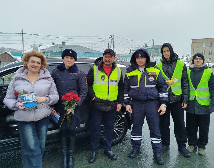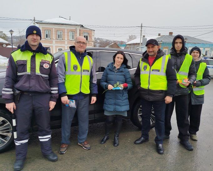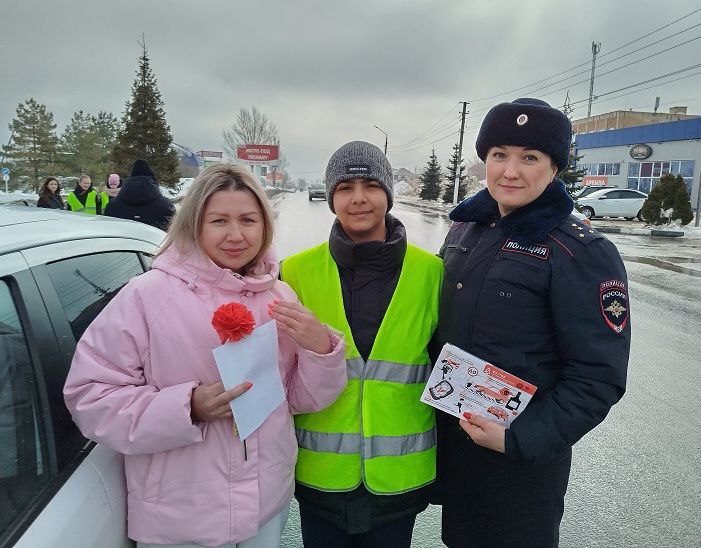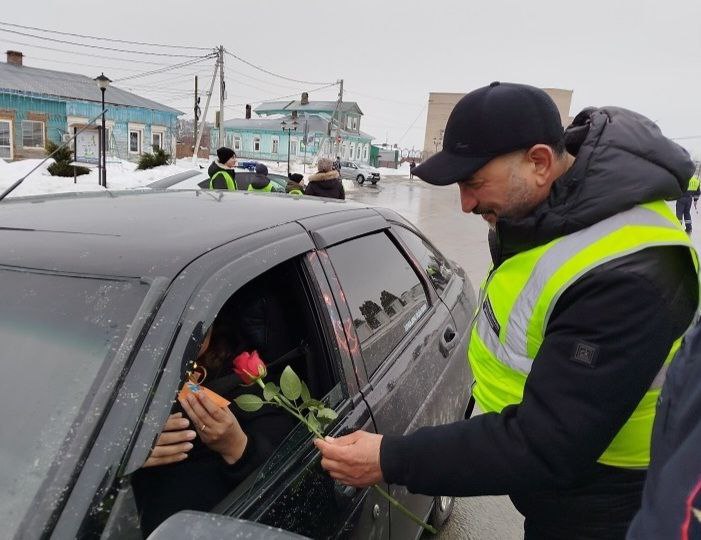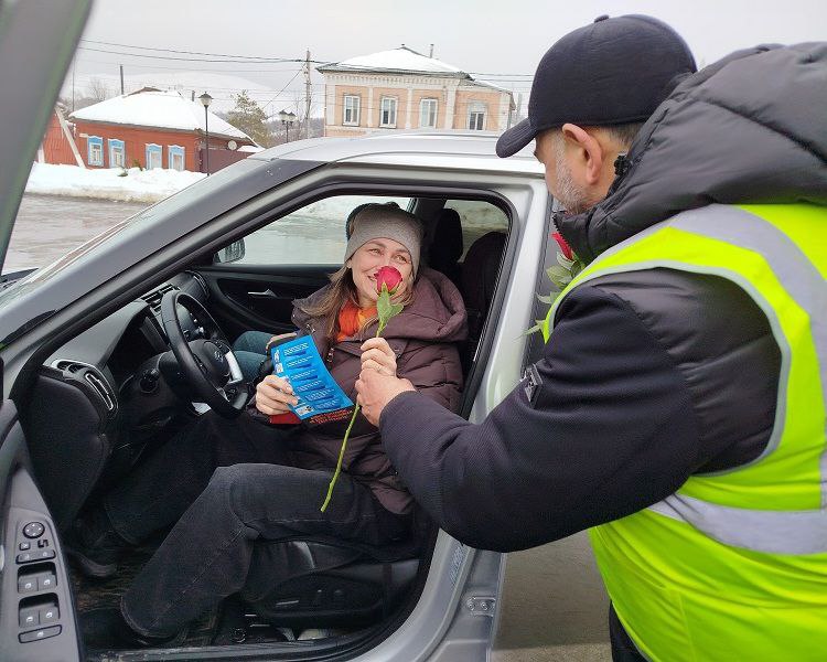 В канун празднования Международного женского дня госавтоинспекторы, члены Общественного совета при МО МВД России "Вольский" Эльчин Аллазов и Дмитрий Егоров и юные инспекторы движения поздравили женщин-водителей с наступающим праздником, а также напомнили о соблюдении Правил дорожного движения.