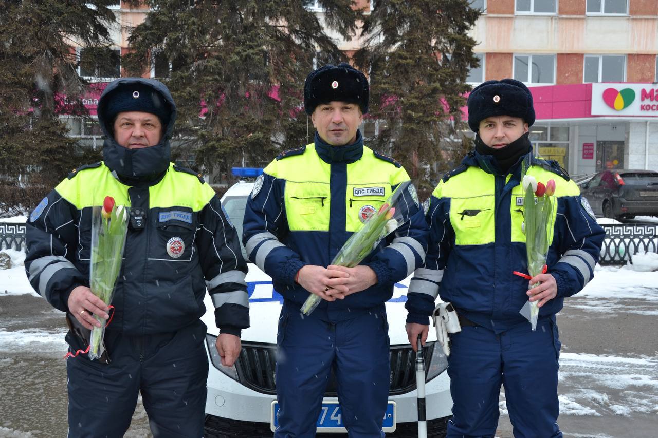 Строгие стражи порядка просили предъявить документы, а затем с улыбкой поздравляли прекрасных дам с наступающим праздником и вручали весенние букеты. Помогали полицейским представители Общественного Совета при МУ МВД России «Балаковское» и Общественной Палаты Балаковского района.