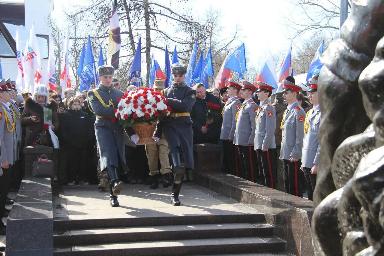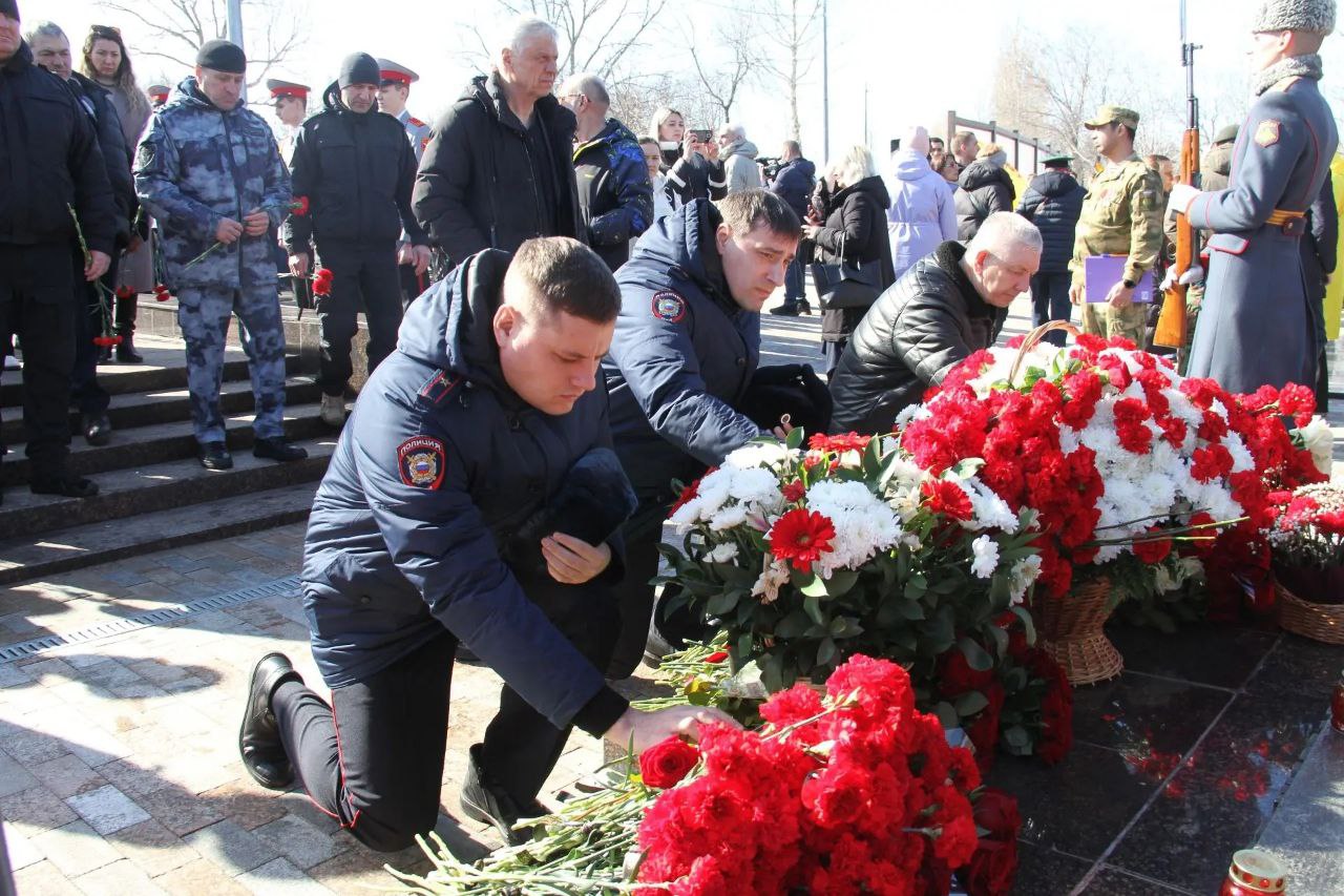 Участники церемонии почтили память погибших военнослужащих минутой молчания.