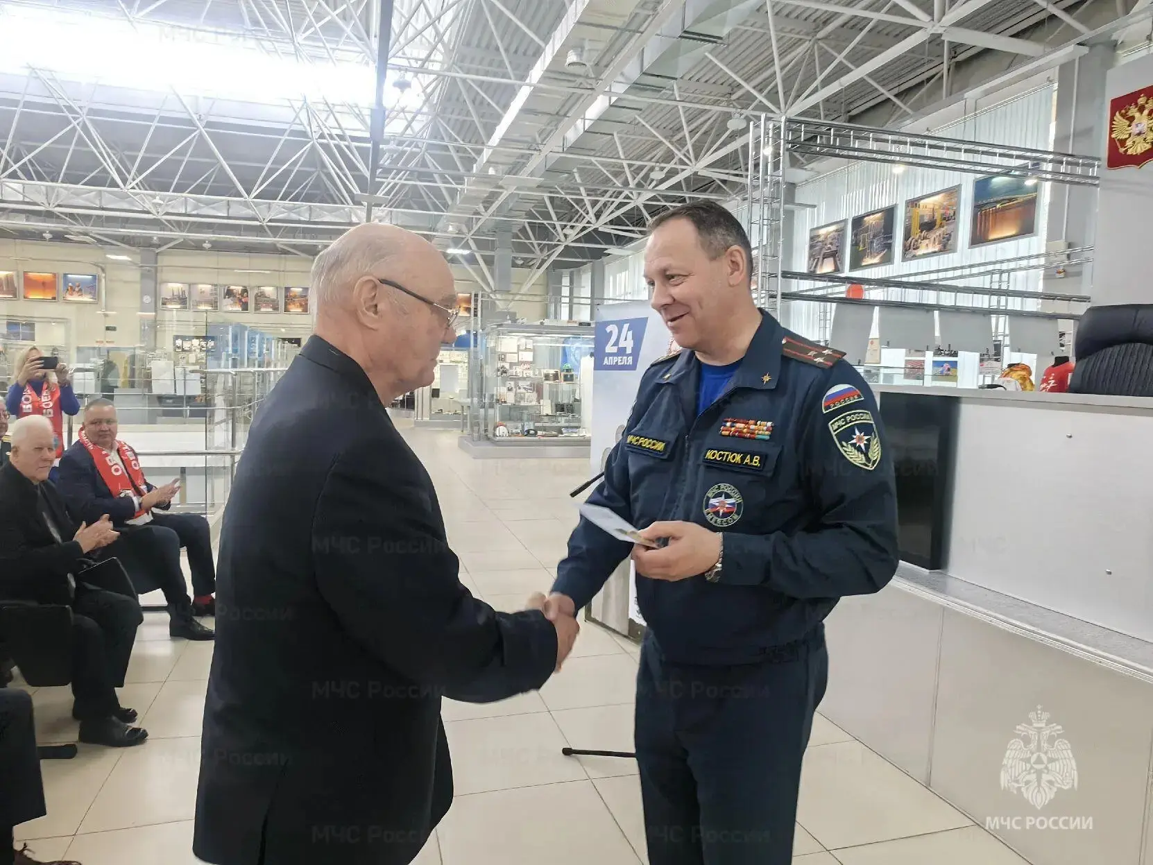 В Музее боевой и трудовой славы с ветеранами-чернобыльцами встретился первый заместитель начальника Главного управления МЧС области полковник Алексей Костюк. Он вручил ветеранам награды, поблагодарил, что они с честью выполнили свой офицерский долг и сегодня в строю.