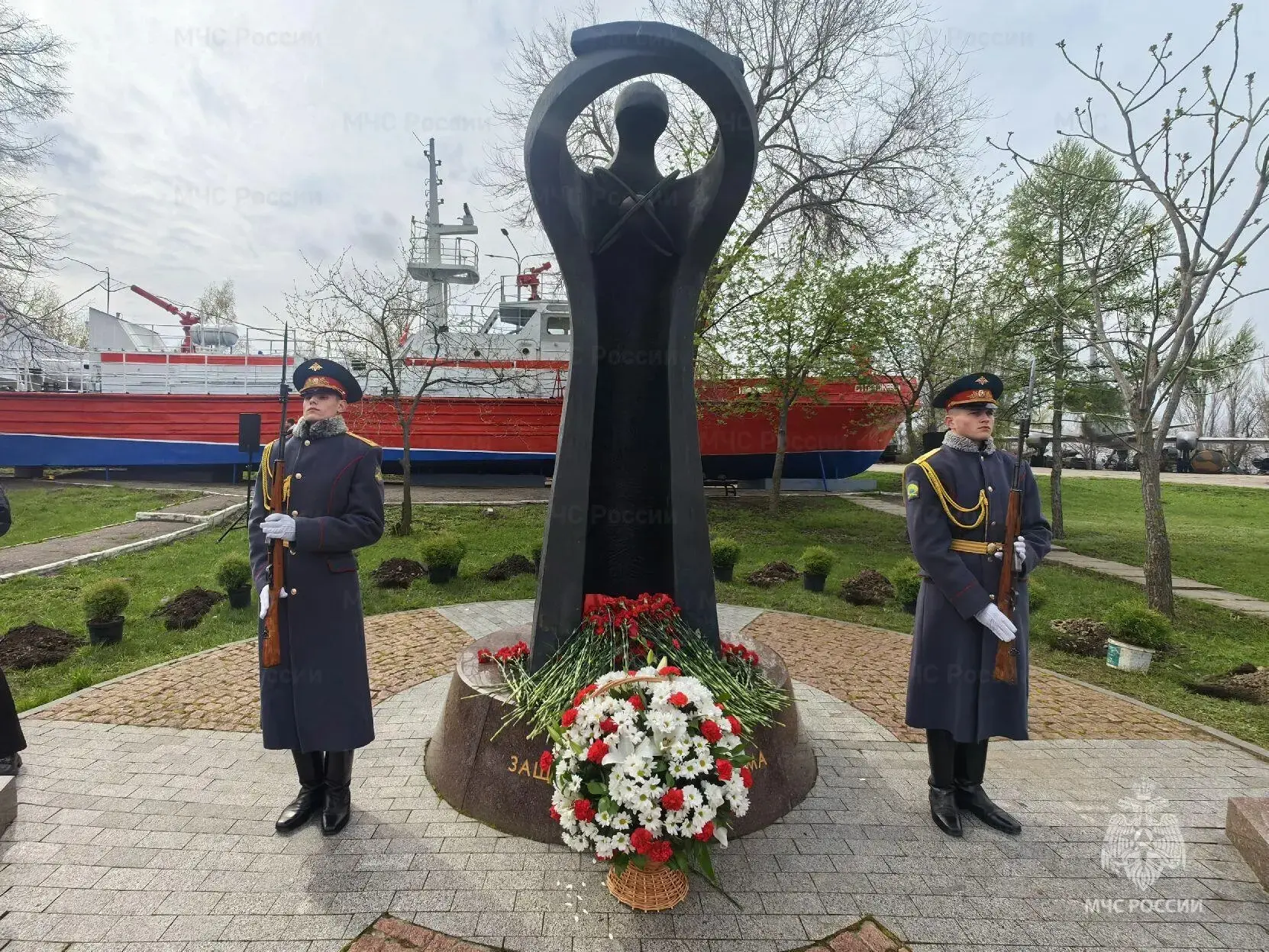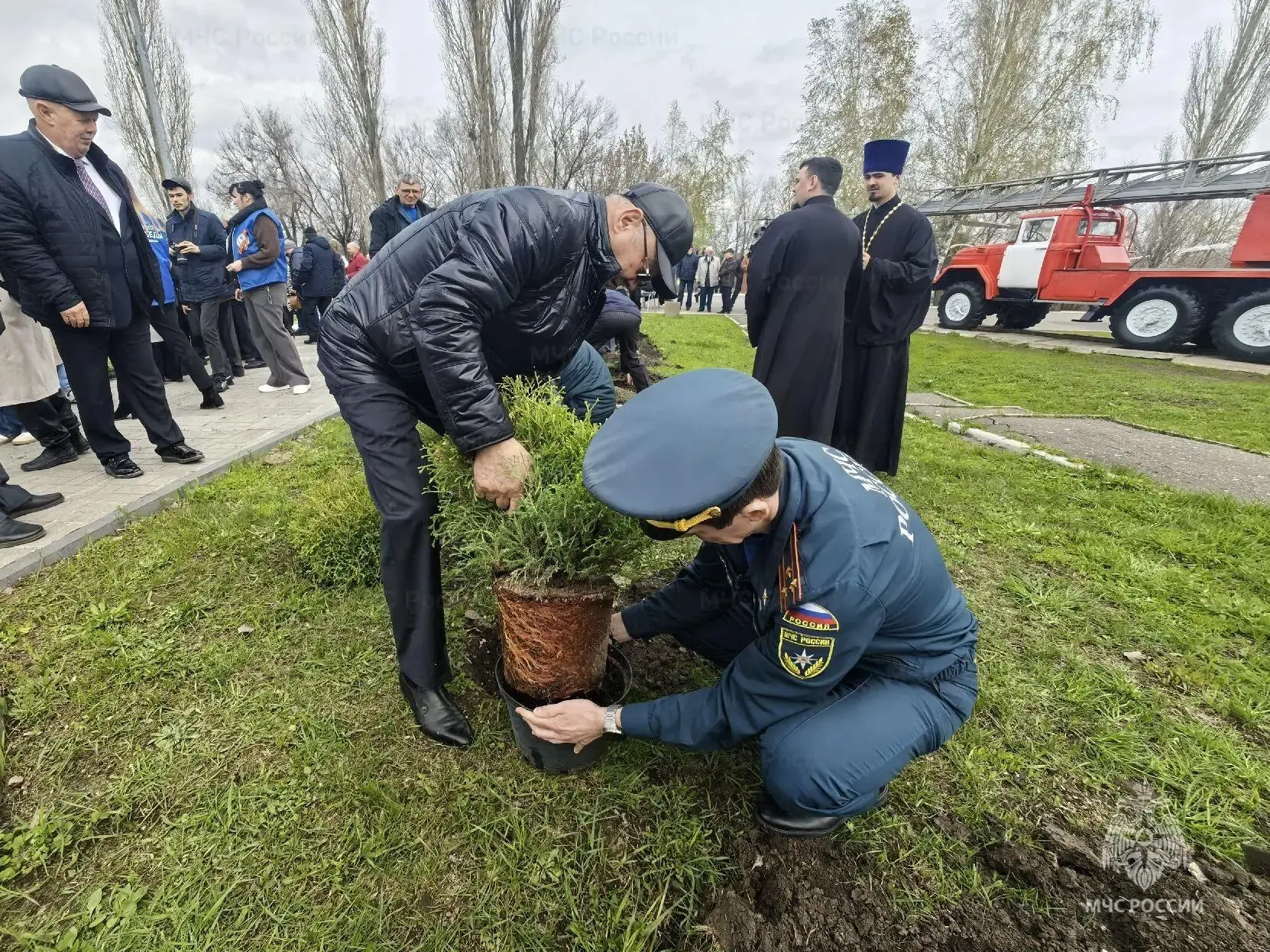 Памятно-траурное мероприятие завершилось минутой молчания и возложением цветов к мемориалу. У памятника участники мероприятия высадили саженцы туй.