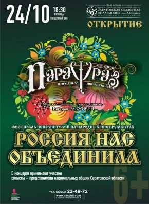 Саратовская областная филармония имени А. Шнитке и ансамбль народных инструментов «Парафраз» готовят оригинальный подарок.На концерте 24 октября публика услышит ассорти национальных музыкальных инструментов: саратовскую гармошку, армянский...
