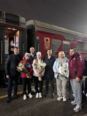 Сегодня в 4:58 утра на железнодорожном вокзале председатель комитета по физической культуре и спорту города Николай Кузнецов встретил с цветами и поздравлениями наших спортсменок – Лилию Нугаеву и Владу Прохорову, а также их тренеров-преподавателей...