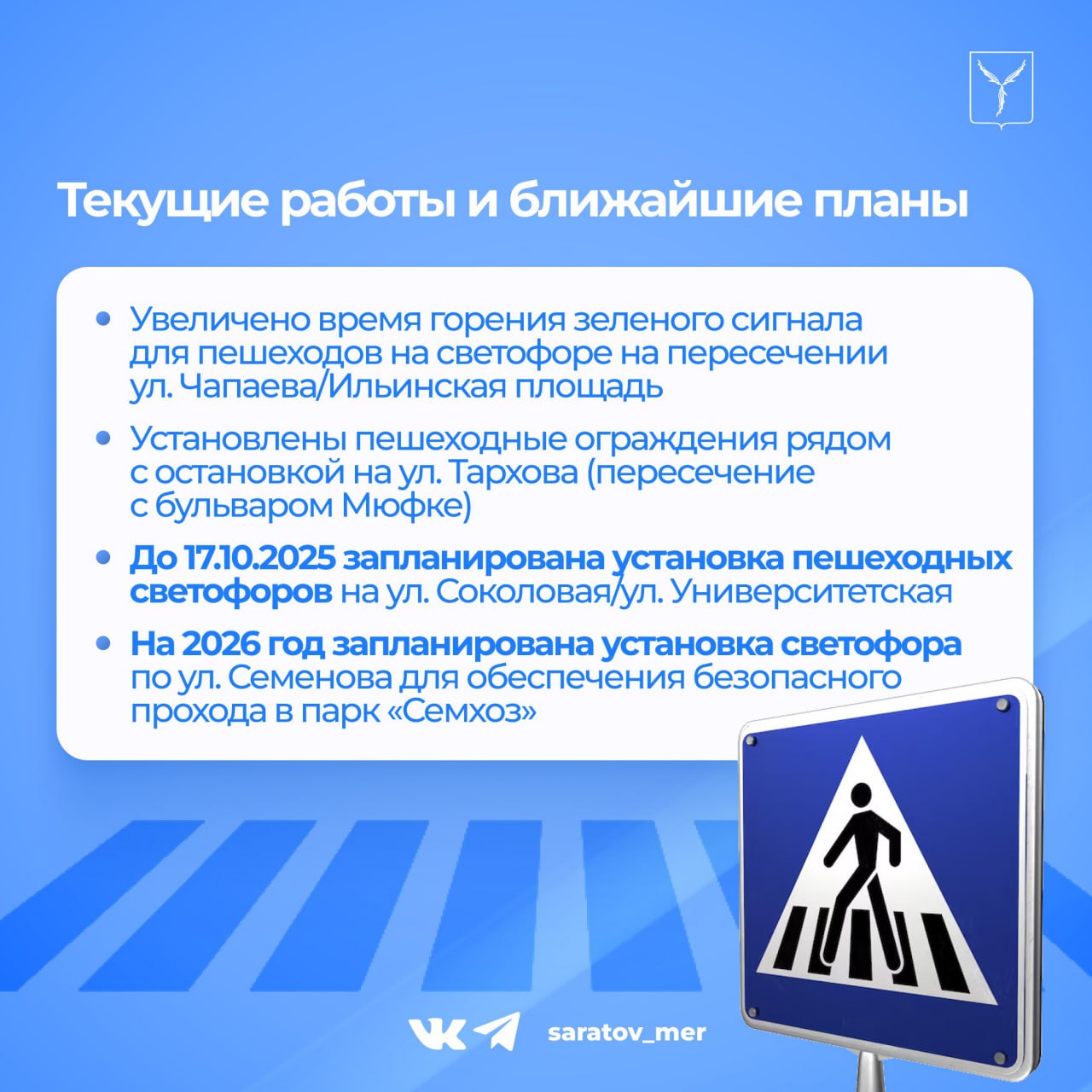 Уважаемые жители, благодарим вас за активность и внимание к вопросам организации дорожного движения в Саратове!