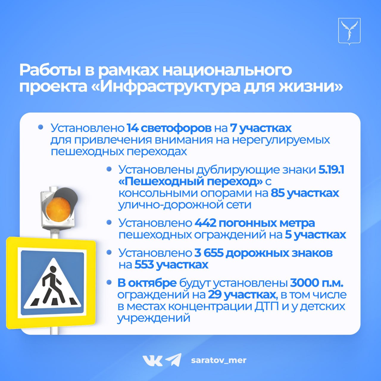 Работа по повышению безопасности дорожного движения в Саратове ведется в течение всего года в рамках национального проекта «Инфраструктура для жизни».