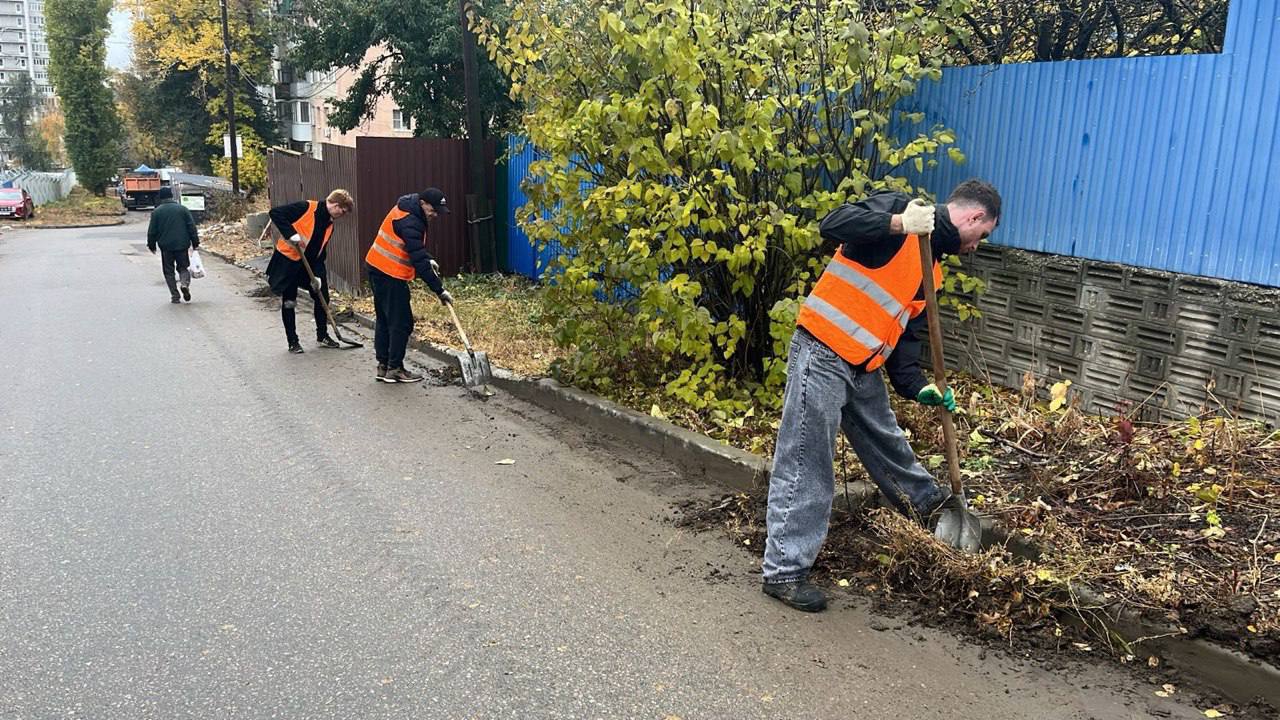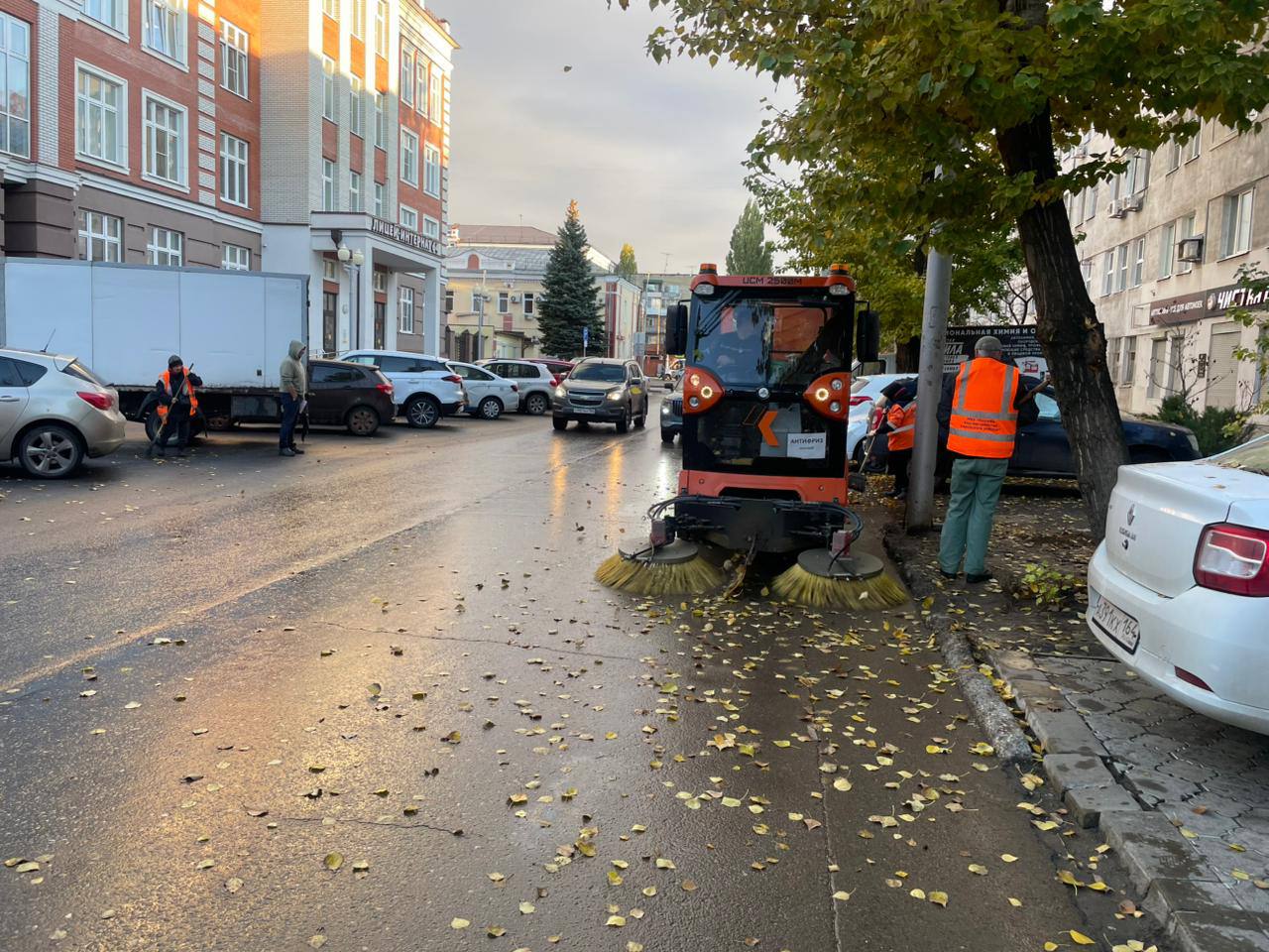 Коммунальные службы выполняют уборку дорожного полотна и пешеходных зон, мойку остановочных павильонов, подготовку цветников к зимнему периоду, сбор случайного мусора, опавшей листвы и другие работы