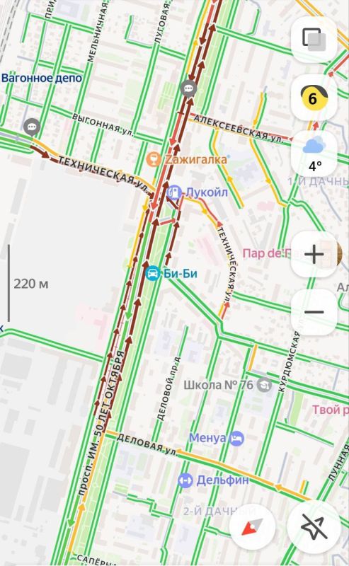 Судя по информации с "Яндекс Карт", 6-балльные пробки застали водителей на проспекте 50 Лет Октября, от улицы Деловая и до Сенного рынка. Так же автомобили стоят по Большой Горной, Тракторной и Технической улицам.