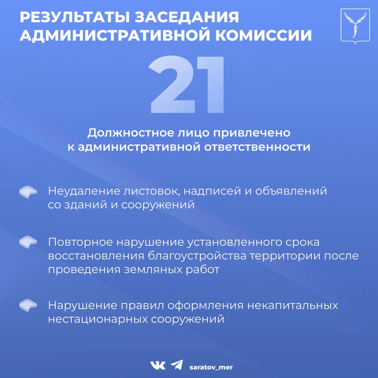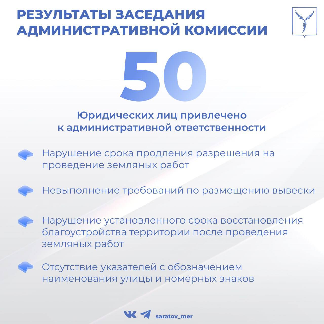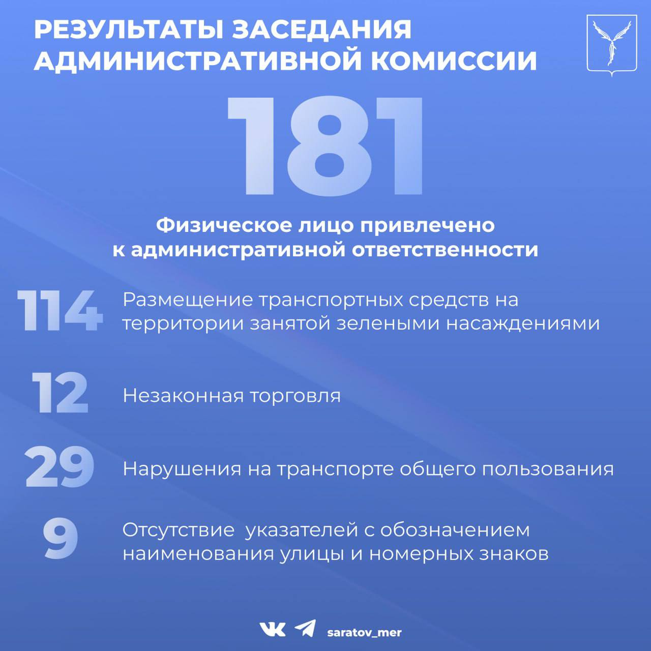 Состоялось очередное заседание административной комиссии муниципального образования «Город Саратов», в ходе которого было рассмотрено 253 дела