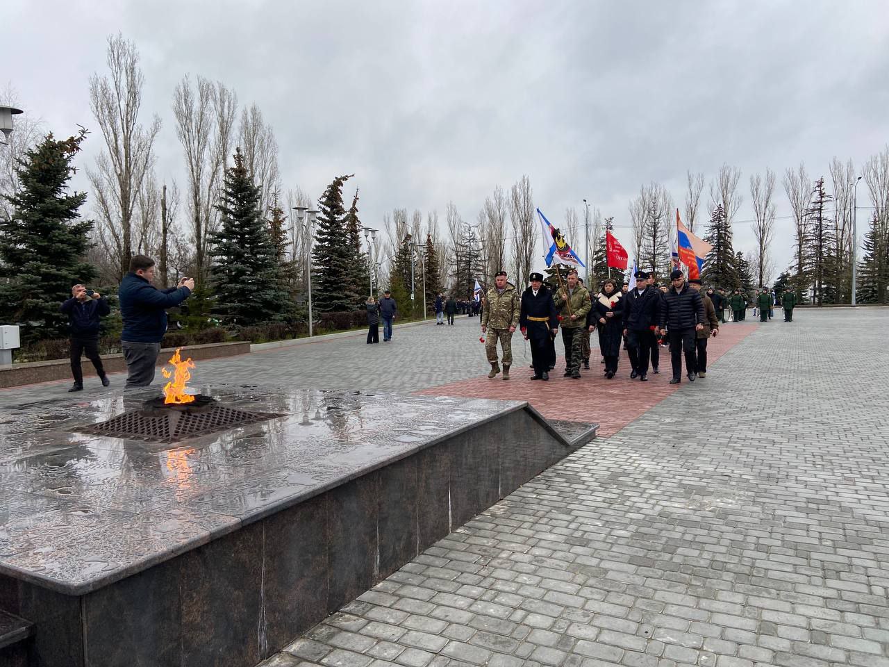Далее участники мероприятий совершили автобронепробег до парка Победы, где под звуки военного оркестра состоялось шествие от мемориала «Вечный огонь» до мемориала «Землякам, погибшим в локальных войнах».
