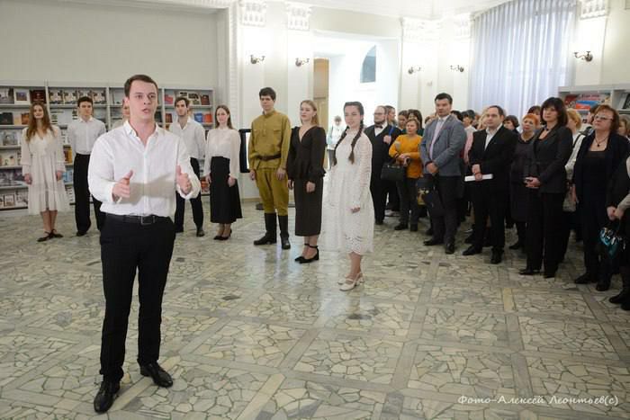Мероприятия продолжились в выставочном зале библиотеки иммерсивной постановкой «Василий Теркин – наш герой!» с участием студентов Театрального института Саратовской государственной консерватории имени Л. В. Собинова (постановщик – ведущая актриса Саратовского государственного академического театра драмы им. И. А. Слонова Татьяна Родионова).