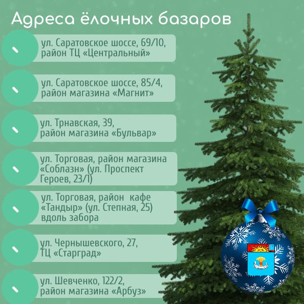 Ёлочные базары будут работать по 31 декабря 2025 года. С адресами можно ознакомиться в карточках