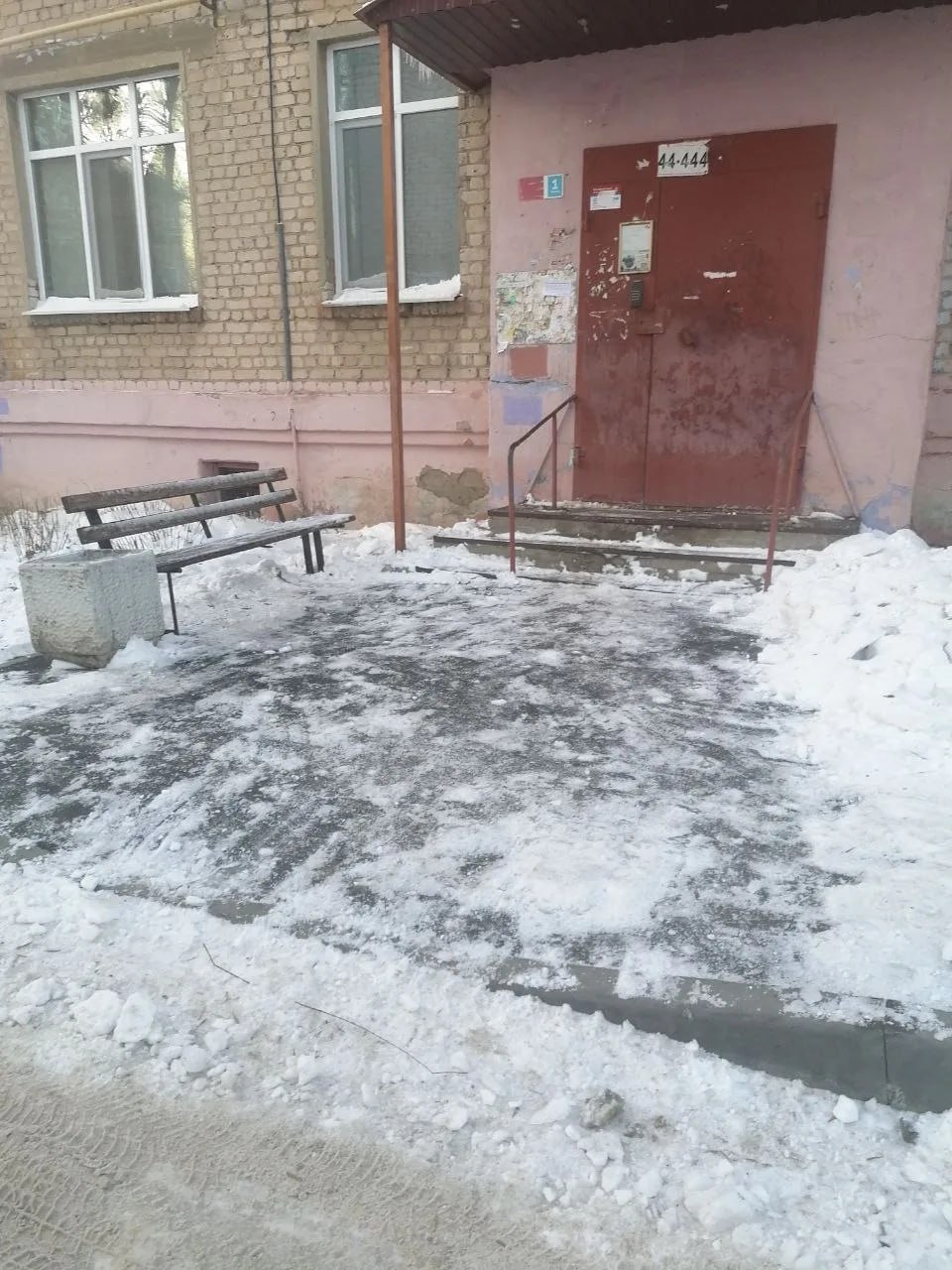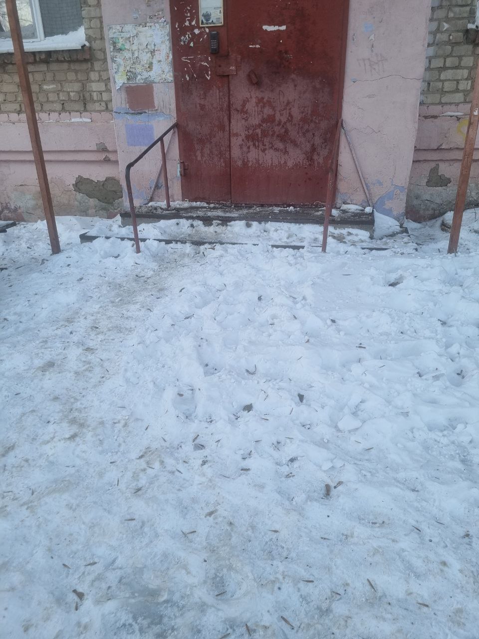 В результате обследования были выявлены факты отсутствия уборки пешеходных дорожек, площадок перед подъездами от снега и наледи в многоквартирных домах №25 по ул. Титова и д. №101 по ул. Ленина.