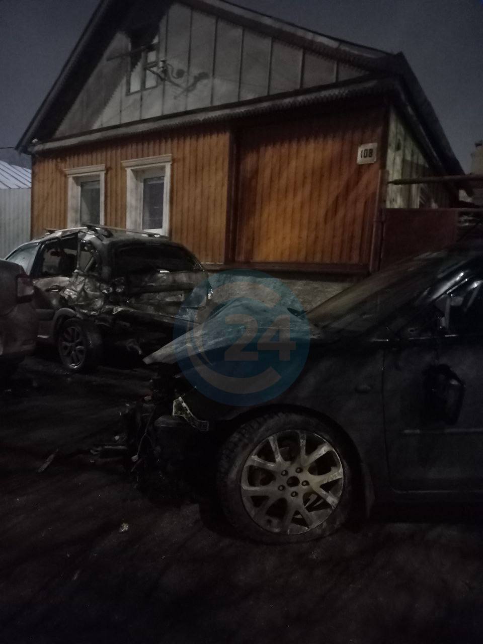 В Саратове ночью иномарка влетела в припаркованное у дома авто