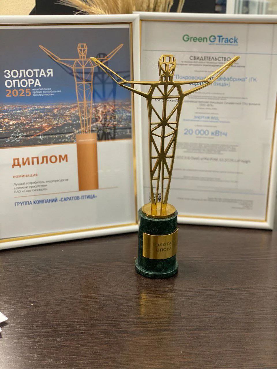 Агрохолдинг признан лучшим по итогам работы за 2025 год в номинации «Лучший потребитель энергоресурсов в регионе присутствия ПАО «Саратовэнерго»». Кроме того, Покровская птицефабрика получила Свидетельство энергоснабжающей организации, подтверждающее, что при производстве яйца предприятие использует возобновляемую и низкоуглеродную энергию.